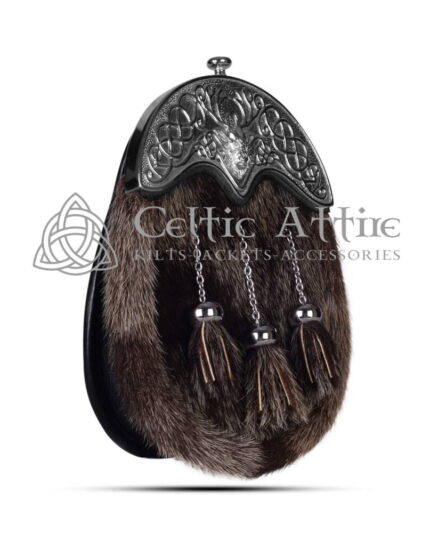 Dark Seal Fur Dress Sporran Silver Stag Head Cantle