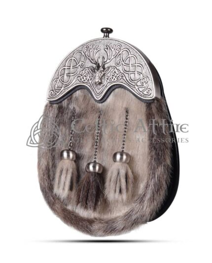 Natural Seal Fur Sporran Antique Stag Head Cantle