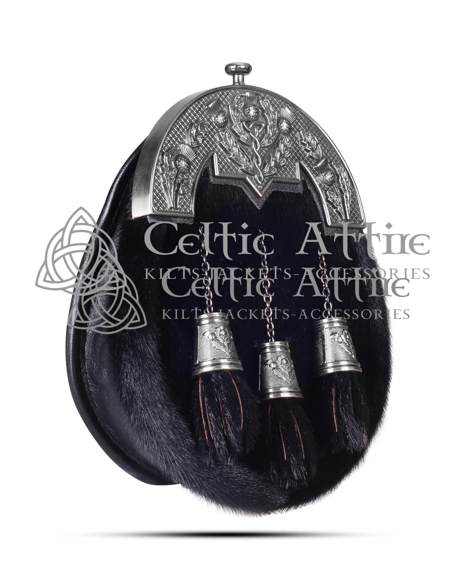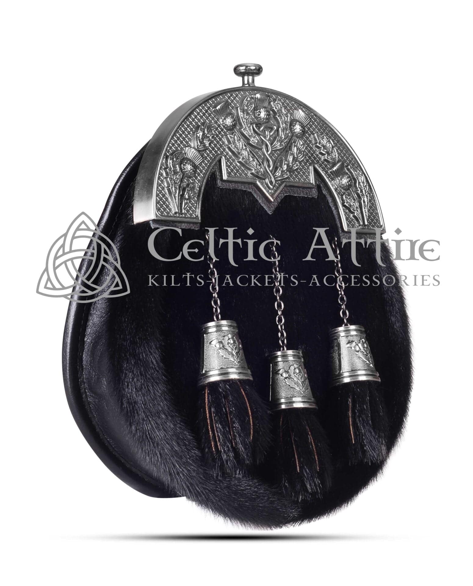 Black Rabbit Fur Antique Black Thistle Cantle Sporran