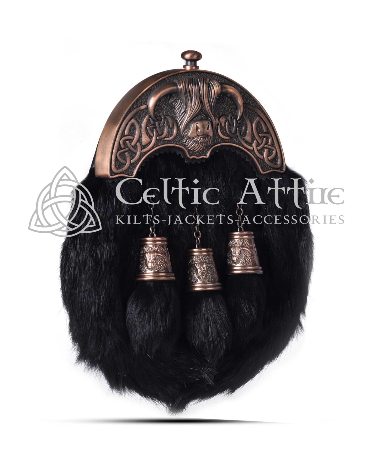 Black Rabbit Fur Full Dress Sporran Bronze Highland Cow Cantle