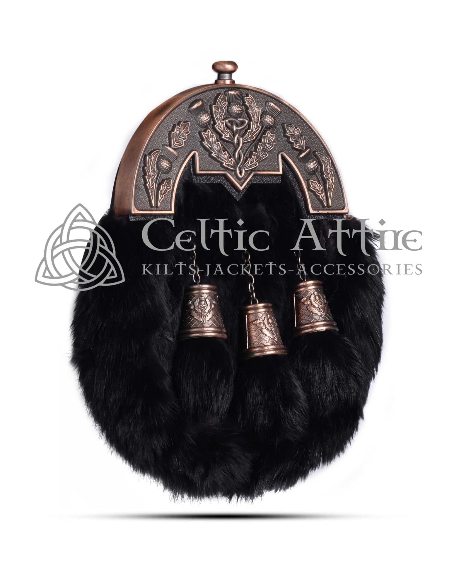 Black Rabbit Fur Full Dress Sporran Bronze Thistle Cantle