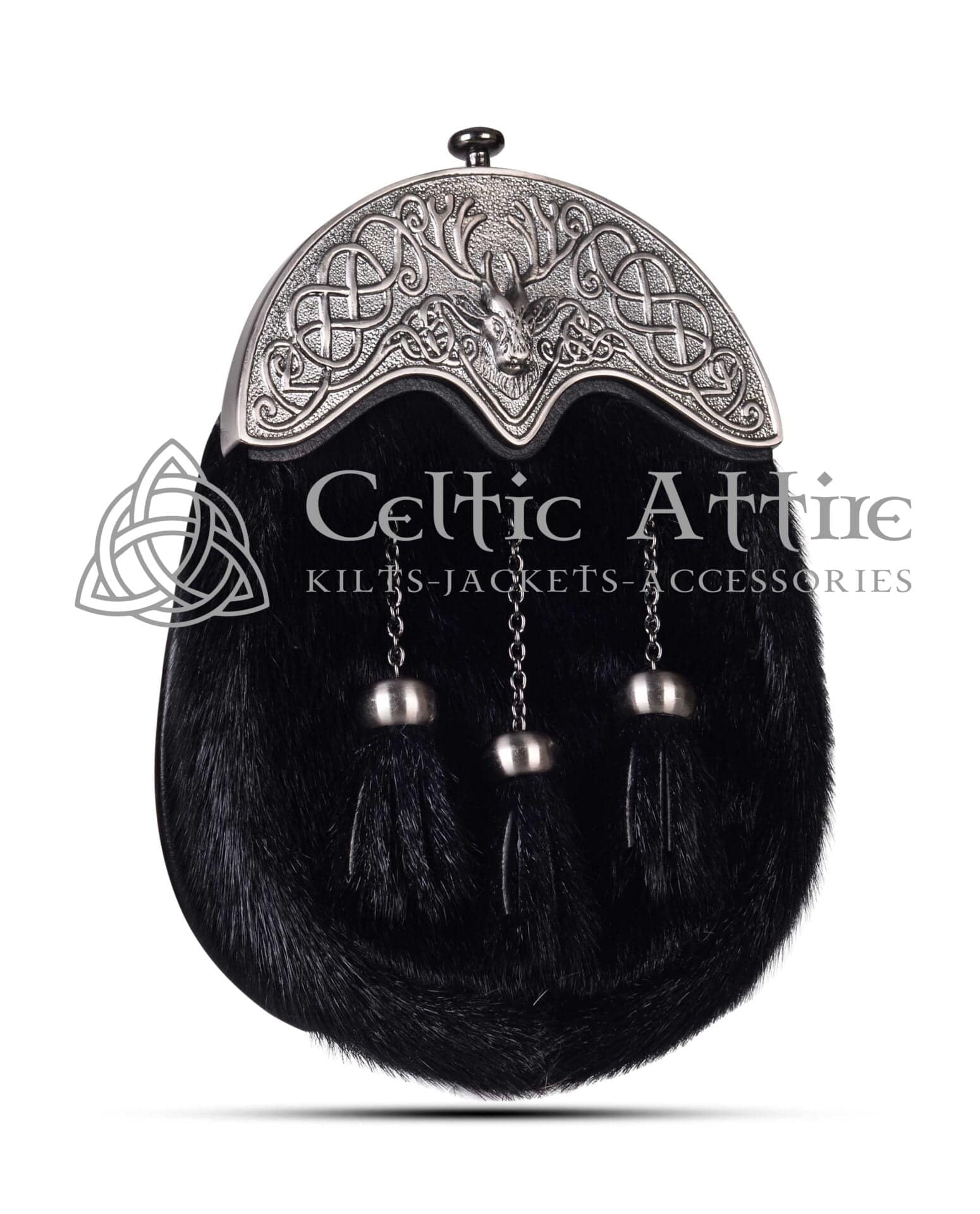Black Seal Fur Full Dress Sporran Silver Stag Head Cantle