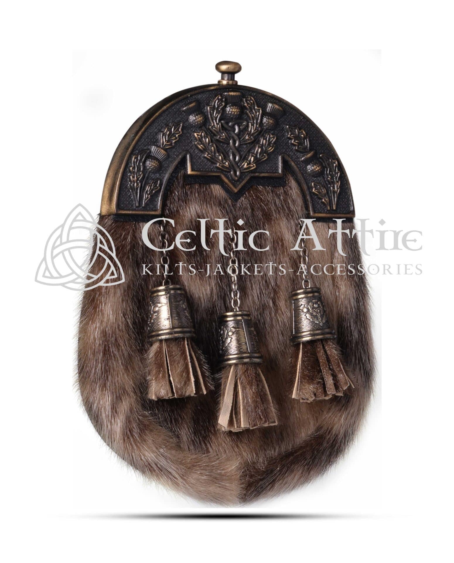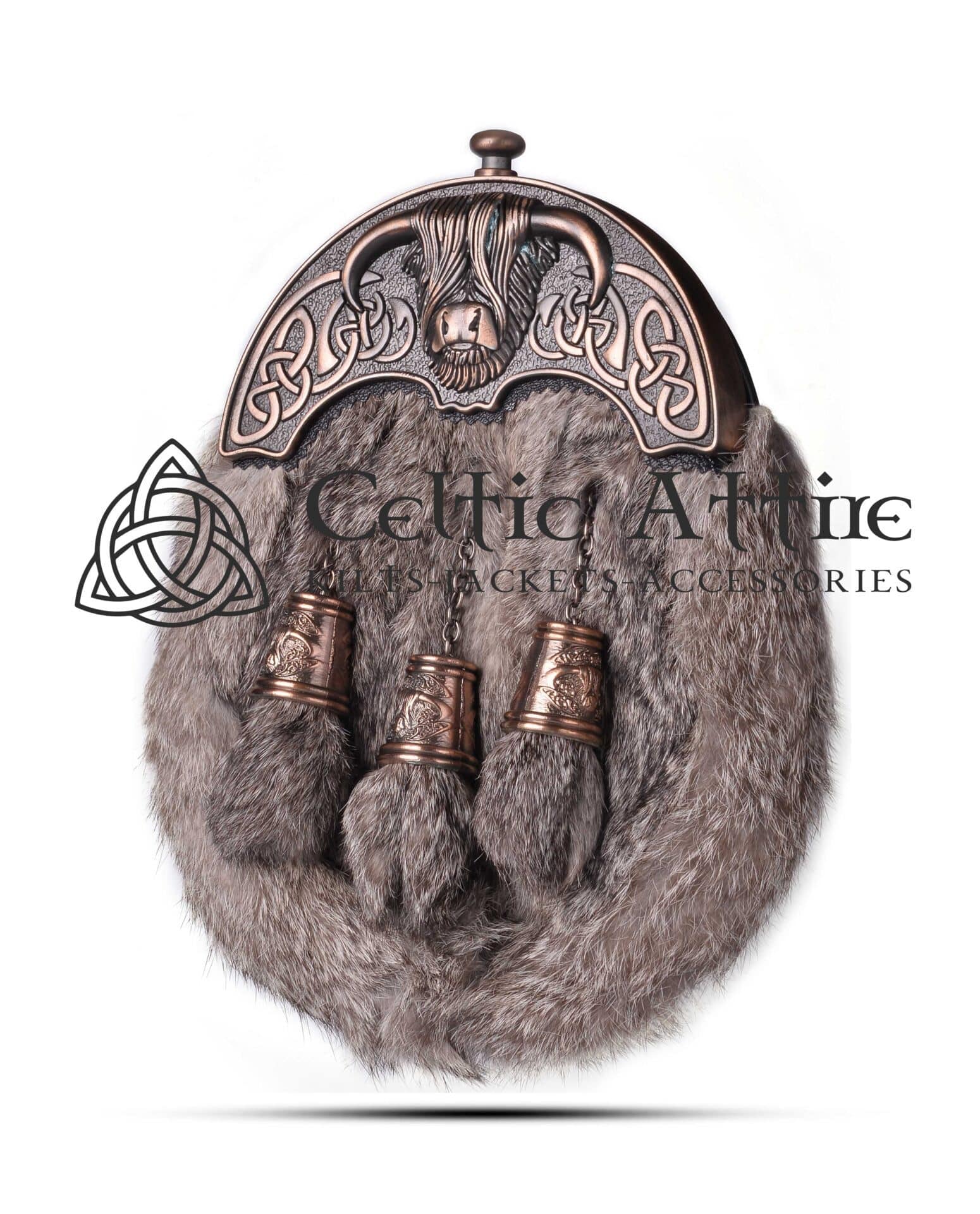 Brown Rabbit Fur Full Dress Sporran – Celtic Knots Cantle