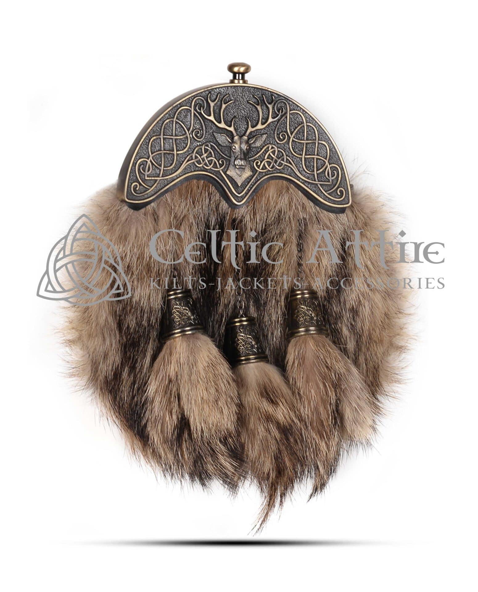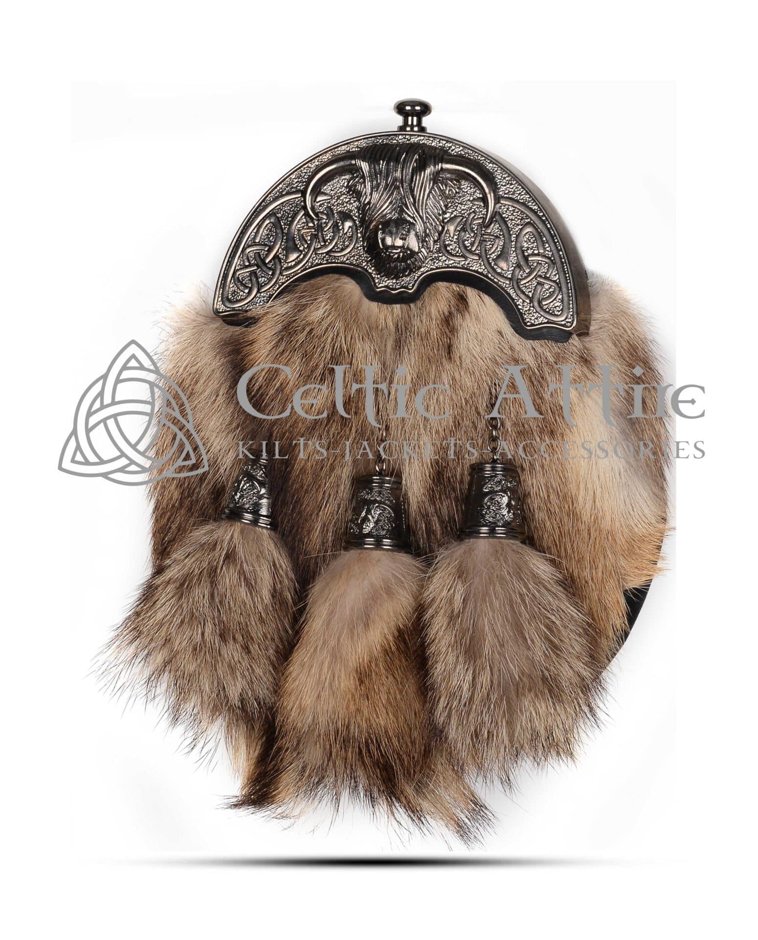 Coyote Fur Full Dress Sporran – Celtic Knot Cantle