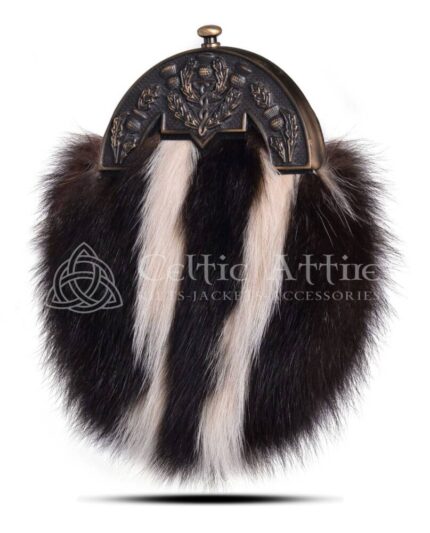 Skunk Fur Full Dress Sporran Brass Thistle Cantle