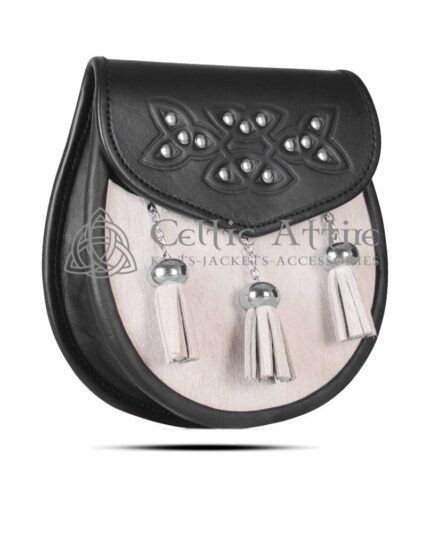 White Fur Scottish Semi Dress Leather Sporran
