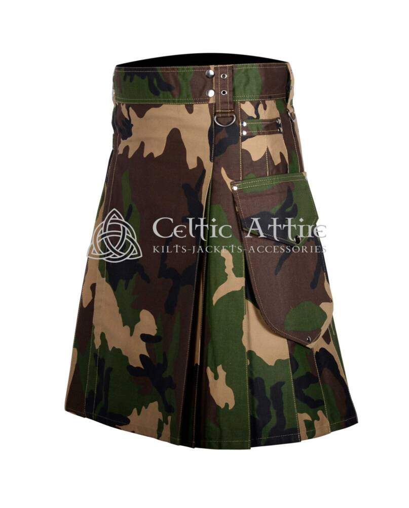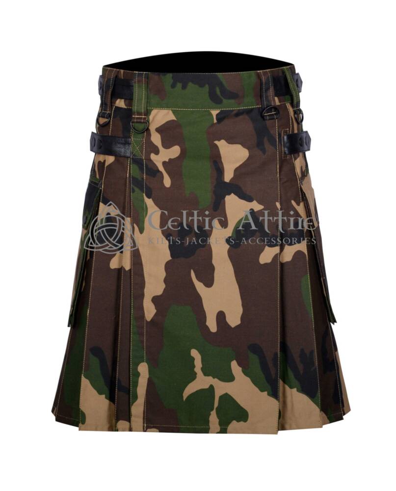 Perfect for festivals, casual gatherings, or everyday wear. It also makes a great gift for the outdoor enthusiast in your life. The Army Camo Cotton Utility Kilt is a must-have addition to any wardrobe.