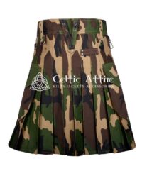You can find the rugged style of our Army Camo Cotton Utility Kilt. This kilt combines traditional design with modern utility. Made from high-quality cotton, it offers comfort and durability. The camo pattern adds a touch of military flair, making it perfect for outdoor adventures.