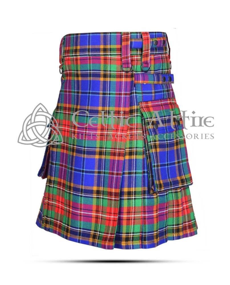 The Beattie Clan Tartan Utility Kilt is a remarkable garment that combines tradition with modern functionality. This kilt features the distinctive Beattie tartan, showcasing a vibrant pattern that reflects the rich heritage of the Beattie clan. Made from high-quality acrylic wool, it is both durable and comfortable, making it perfect for a variety of occasions.