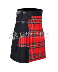 The Black Cotton and Scottish Tartan Hybrid Kilt is a modern take on traditional Highland attire, combining classic tartan heritage with contemporary utility design. Crafted from premium quality black cotton fabric and authentic Scottish tartan, this hybrid kilt offers exceptional comfort, durability, and versatile style, making it ideal for everyday wear, outdoor activities, festivals, and formal occasions.