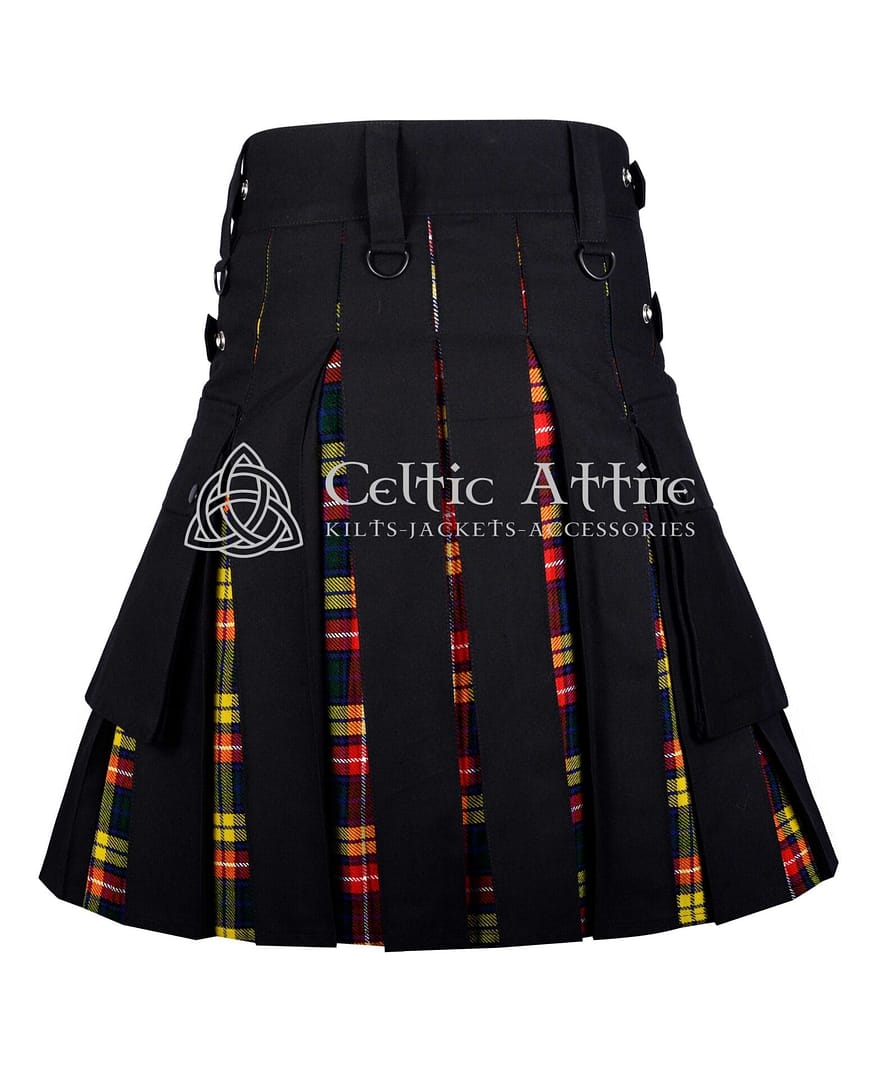 The Black Cotton Buchanan Hybrid Utility Kilt is perfect for pairing with a variety of tops. Whether you opt for a casual t-shirt for a relaxed look or dress it up with a button-down shirt for a more polished appearance, this kilt adapts to your style. It also pairs well with different footwear, from sturdy boots to trendy sneakers, making it a versatile addition to any wardrobe.