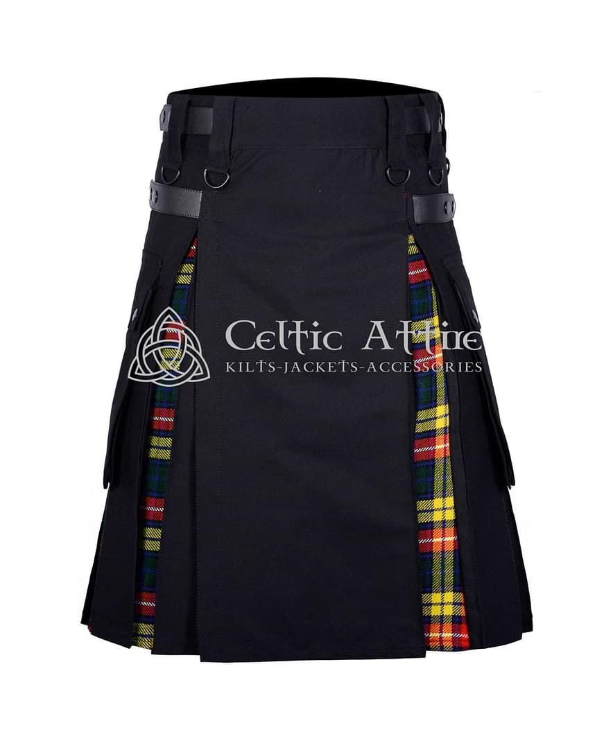 The Black Cotton Buchanan Hybrid Utility Kilt is a stylish and functional garment that beautifully blends tradition with modern practicality. Made from high-quality black cotton, this kilt offers both comfort and durability, making it perfect for all-day wear. The standout feature is the classic Buchanan tartan pattern, which adds a touch of heritage while remaining versatile enough for various occasions.