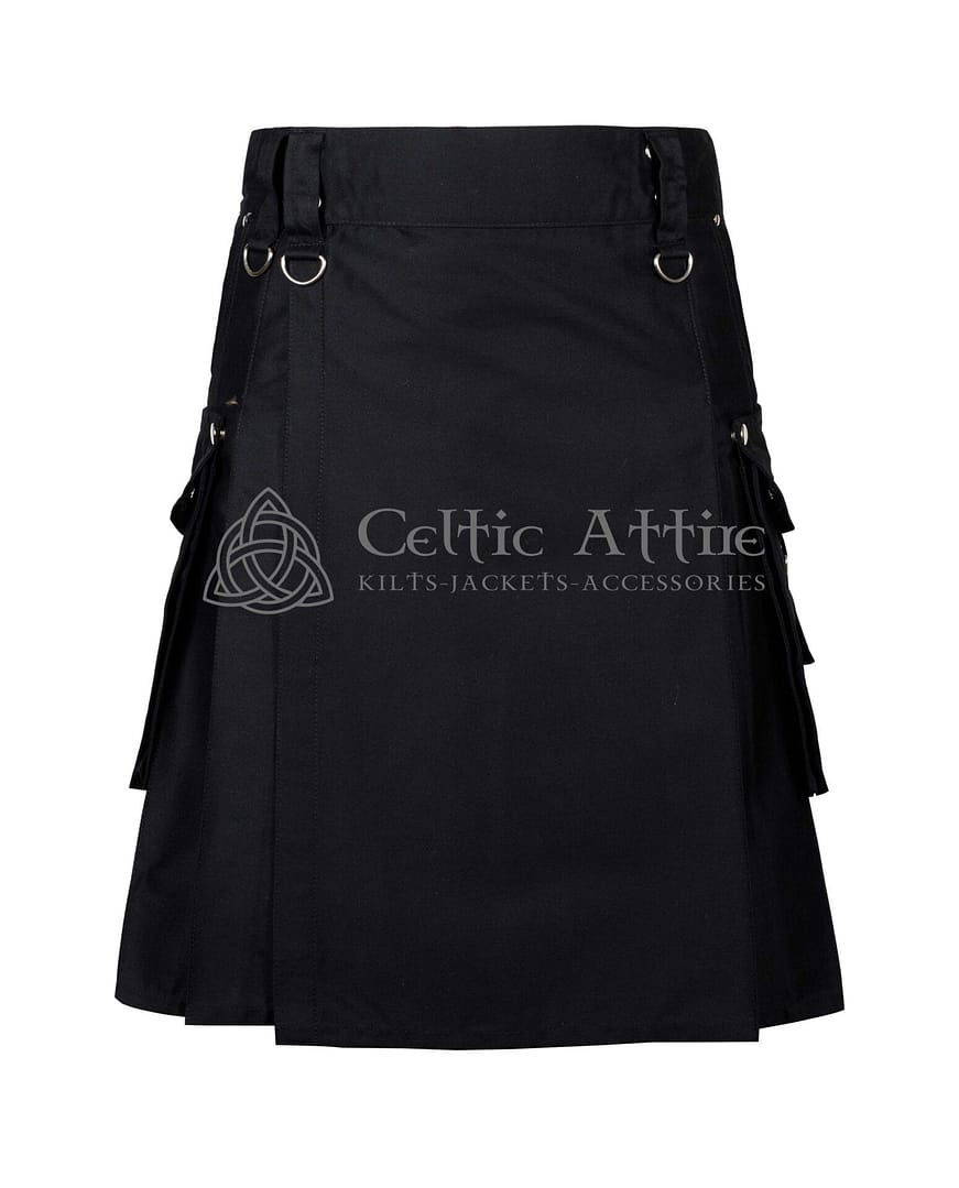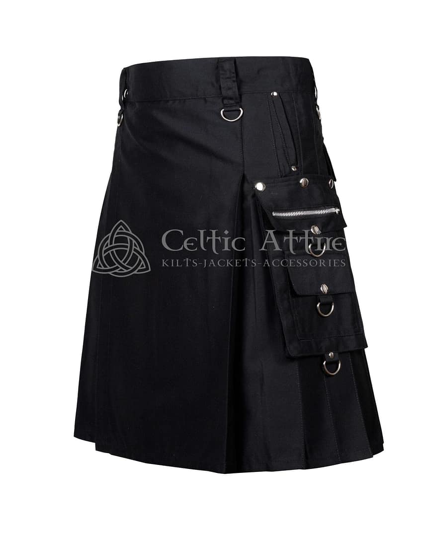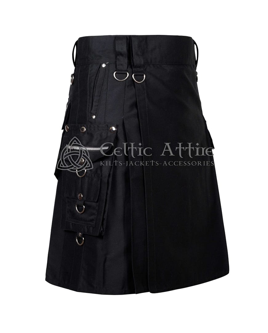 Elevate your style with our Black Cotton Gothic Punk Kilt, the perfect fusion of comfort and edge. We have crafted it from high-quality black cotton, this kilt is designed for durability while ensuring you stay comfortable all day long. The kilt showcases a unique gothic punk aesthetic, featuring bold leather patches that add a distinct flair. Each patch is thoughtfully placed, enhancing the overall design and making a statement wherever you go.