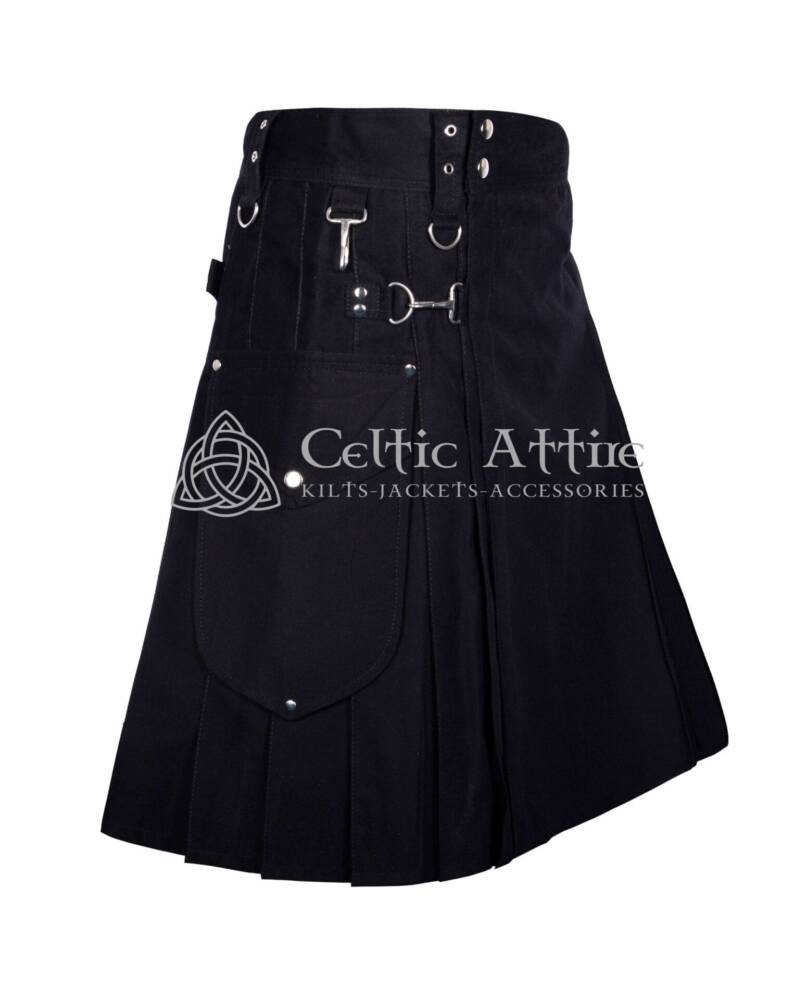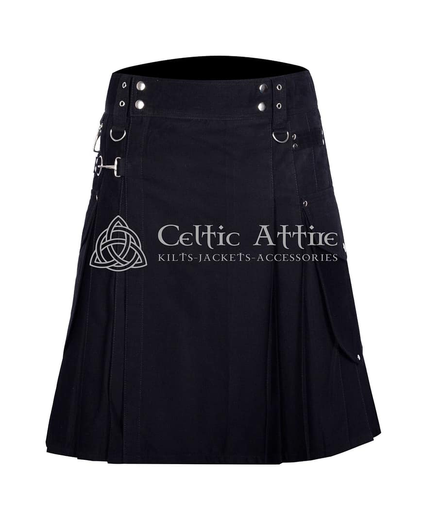 Upgrade your wardrobe with our Black Cotton Utility Kilt. This versatile kilt blends traditional style with modern functionality. Made from durable, high-quality cotton, it offers both comfort and resilience, making it perfect for everyday wear.
