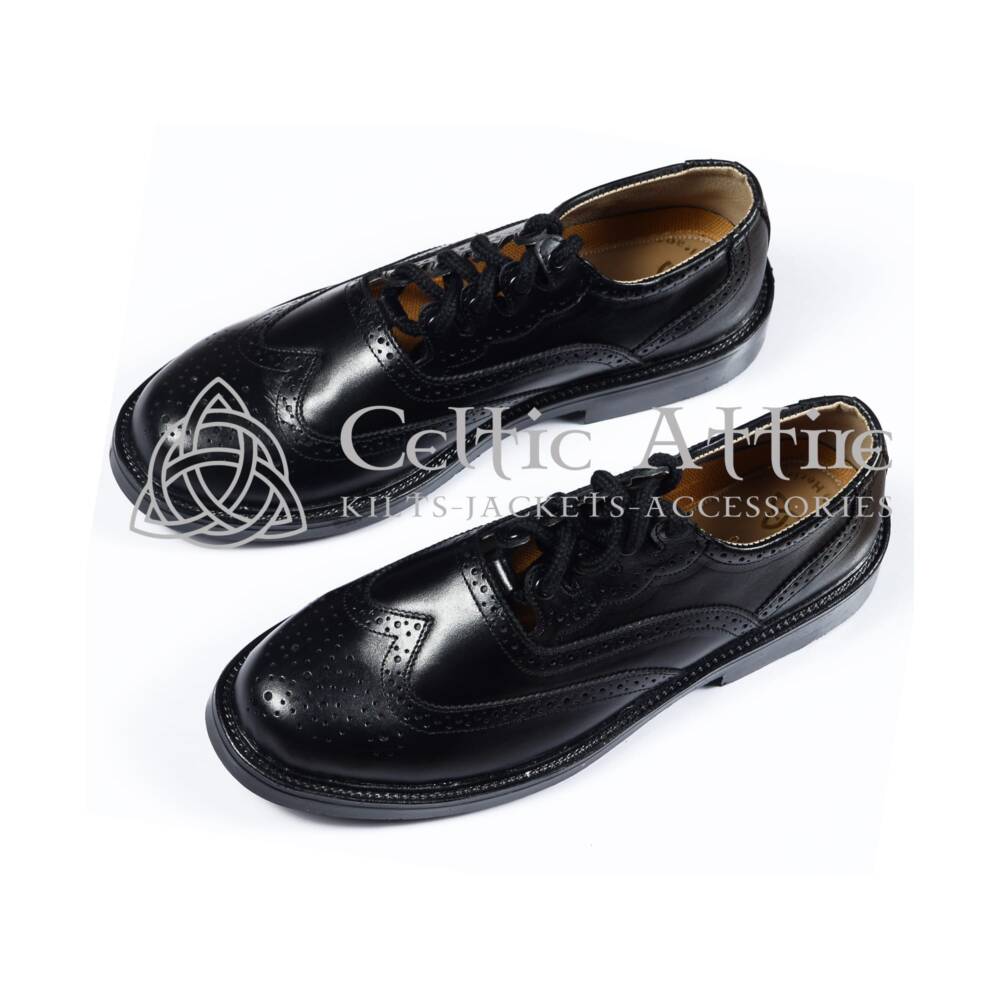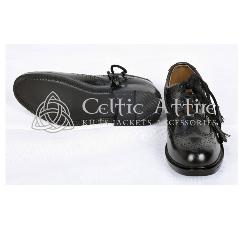 The sturdy sole provides exceptional comfort and support, allowing you to wear them all day with ease. Whether you’re attending a wedding, a ceilidh, or simply embracing your Highland heritage. These brogues are the ideal footwear to complete your kilt ensemble. Their authentic design pairs seamlessly with traditional Scottish outfits, adding a touch of sophistication to your look. Available in a range of sizes, Black Leather Ghillie Brogues cater to all foot types, ensuring a perfect fit for everyone. Combining timeless craftsmanship with modern comfort, these shoes are a must-have addition to any wardrobe.