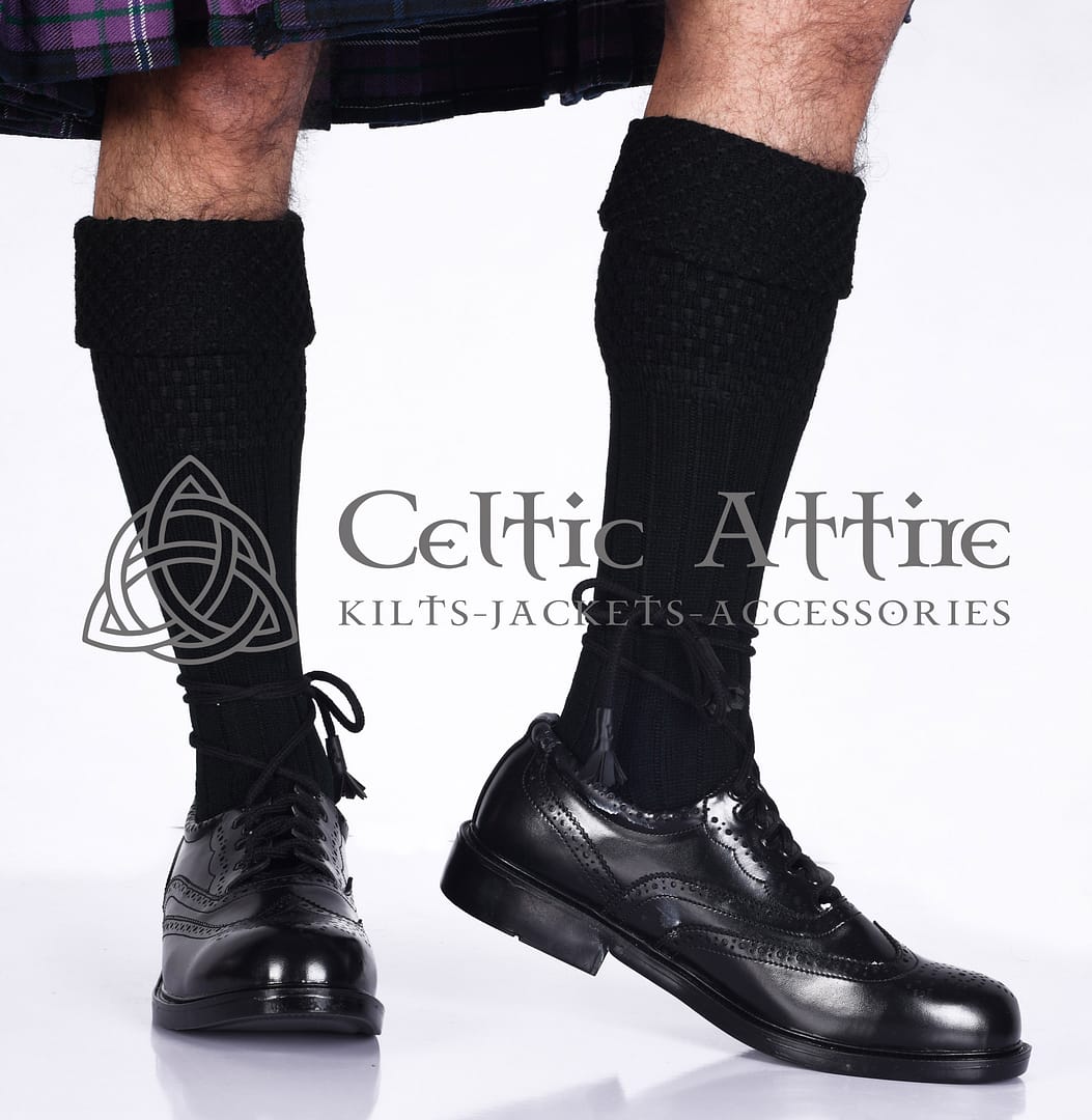 Elevate your kilt ensemble with our premium Black Kilt Socks, designed to combine timeless style with unmatched comfort. Crafted for those who appreciate the finer details, these socks are the ultimate accessory for formal events, traditional gatherings, or casual outings. Made from high-quality materials, they ensure durability and a perfect fit, making them a must-have in your wardrobe.