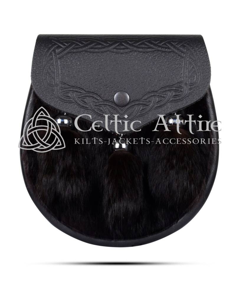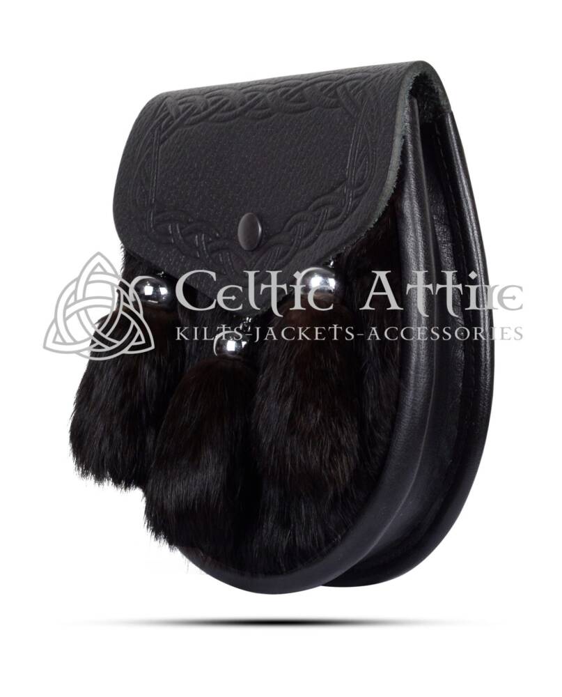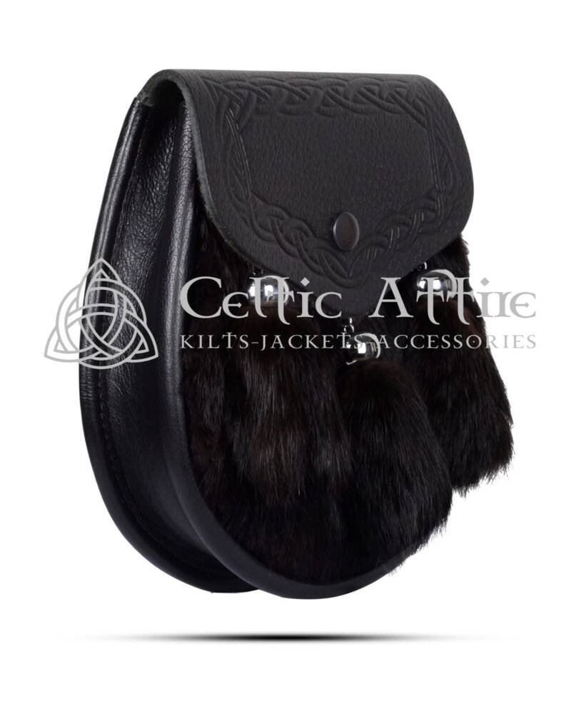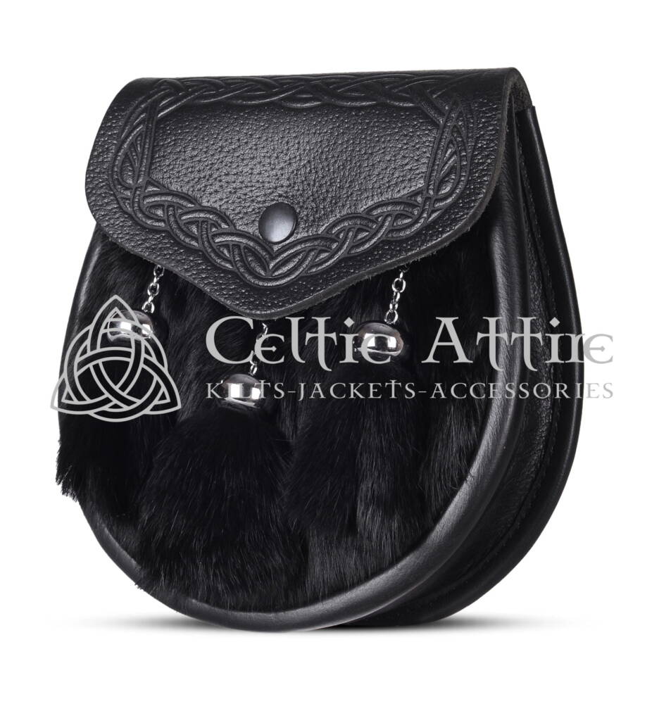 Elevate your Scottish attire with the Real Leather Scottish Semi Dress Black Rabbit Fur Sporran, a perfect blend of elegance and tradition. Crafted from luxurious rabbit fur, this sporran offers a soft and plush texture that enhances the overall sophistication of your ensemble. The striking contrast of the black fur against the leather body creates a visually appealing accessory that complements any kilt. Adorned with ornate chrome 3 tassel balls, it’s elegance strikes as a symbol of Scottish pride and resilience. This sporran is not only stylish but also rich in cultural significance. Semi Dress Sporrans are popular as you can wear them at formal or informal Scottish events or even as daily wear.