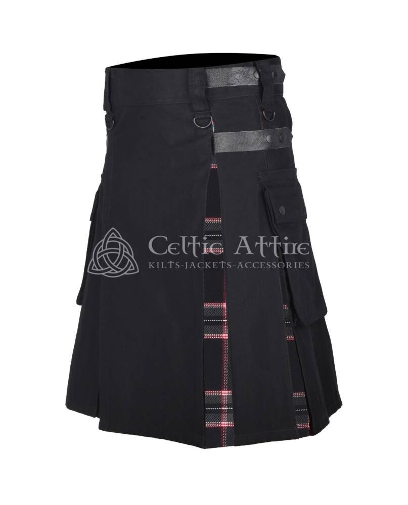 The Black Magic Tartan Black Cotton Hybrid Utility Kilt pairs easily with boots, t-shirts, shirts, or jackets for a versatile outfit. It suits Highland events, casual gatherings, and modern kilt fashion. This kilt also makes an excellent gift for those who appreciate bold tartan design and functional style.
