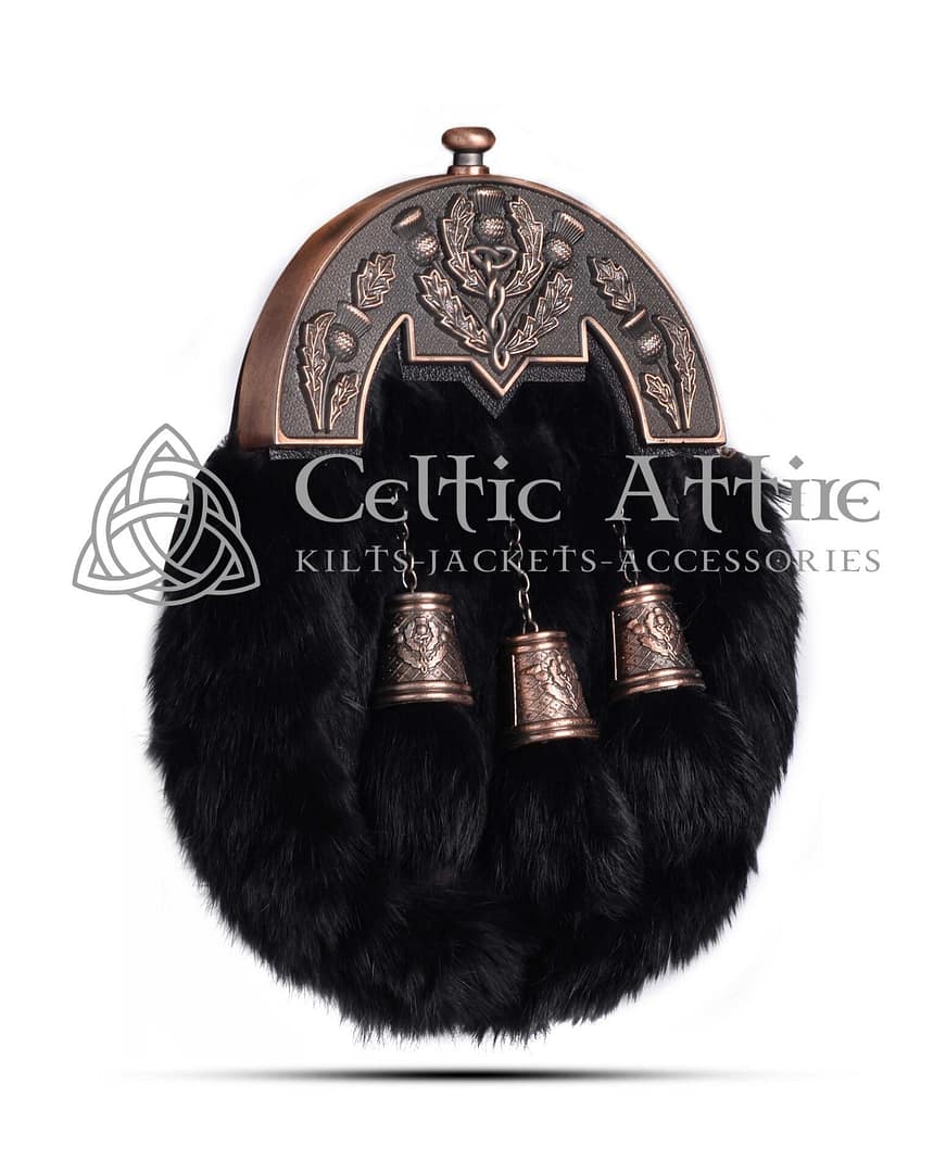 Black Rabbit Fur Full Dress Sporran Bronze Thistle Cantle