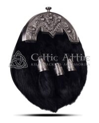 The Nickle Brushed Rabbit Fur Sporran is a captivating accessory that enhances any formal Highland outfit. Made from high-quality black rabbit fur, this sporran features a beautifully designed nickel-brushed thistle cantle, symbolizing Scotland’s rich heritage. The soft texture and sleek black tones of the fur create a luxurious appearance, perfect for weddings, Highland games, and other ceremonial occasions. This sporran is not only stylish but also functional. It offers ample storage space for your essentials, ensuring you have everything you need at hand. The interior is lined with soft suede, providing a secure place for cards and coins.