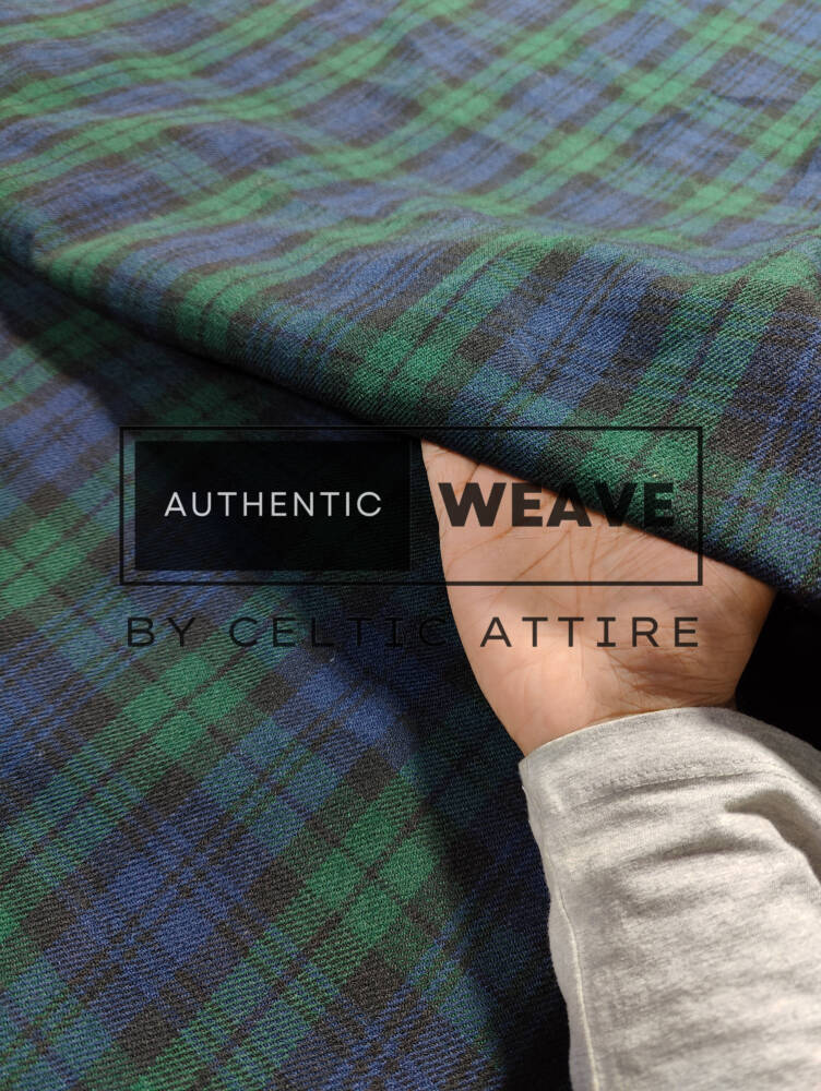 Immerse yourself in the rich history and timeless charm of Black Watch Tartan Fabric. This iconic tartan design features deep hues of navy blue, forest green, and black, with fine lines of red and green woven into a classic crisscross pattern. Renowned for its association with Scottish military tradition and elegance, Black Watch Tartan Fabric is perfect for creating kilts, skirts, scarves, or home decor items that exude both heritage and sophistication. Embrace the spirit of Scottish culture and craftsmanship with this fabric, ideal for adding a touch of tradition to your next creative project.