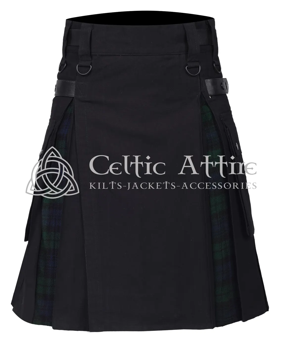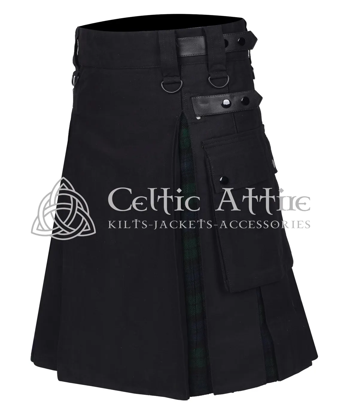 Celtic Attire offers Modern Scottish Hybrid Utility Kilts in 5 different versions of Black Watch Tartan Fabric: