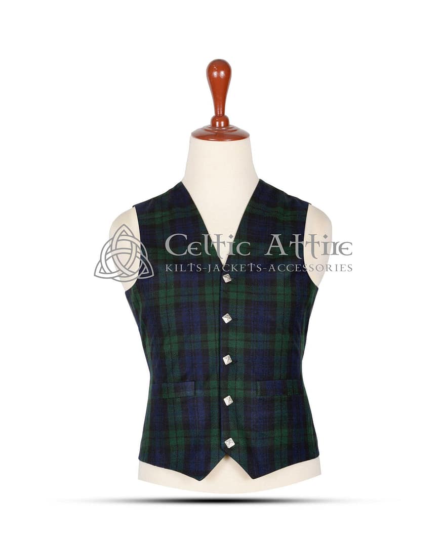 Embrace your unique style with the Black Watch Tartan Waistcoat. This striking waistcoat features the iconic Black Watch tartan pattern, characterized by deep greens and rich blacks, seamlessly blending traditional Scottish heritage with contemporary fashion. Ideal for a variety of occasions, this waistcoat allows you to express your individuality while maintaining a classic look.