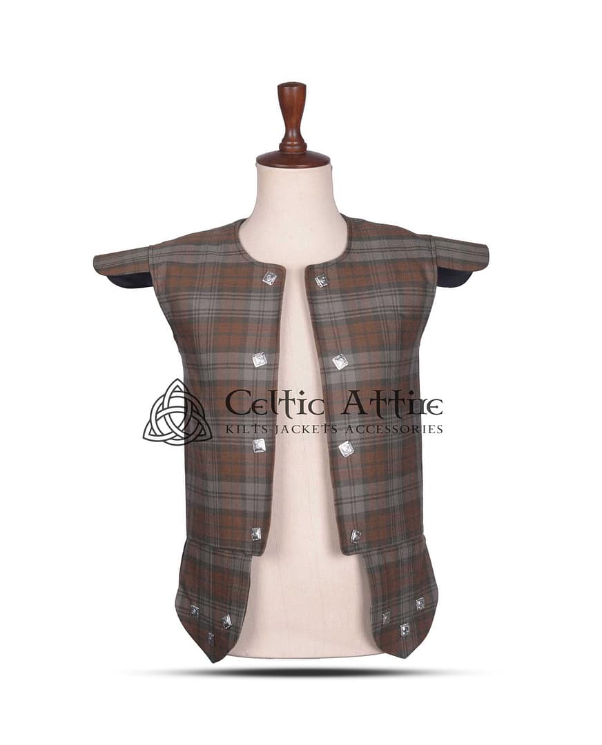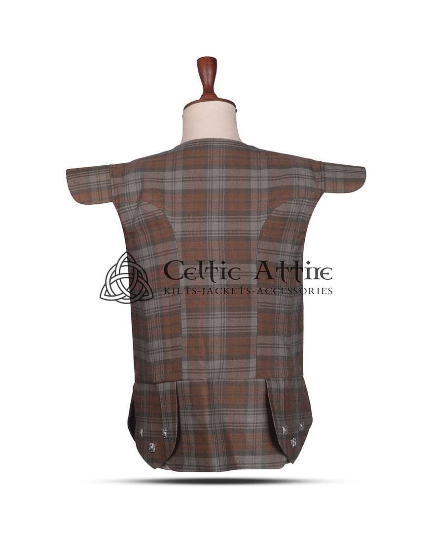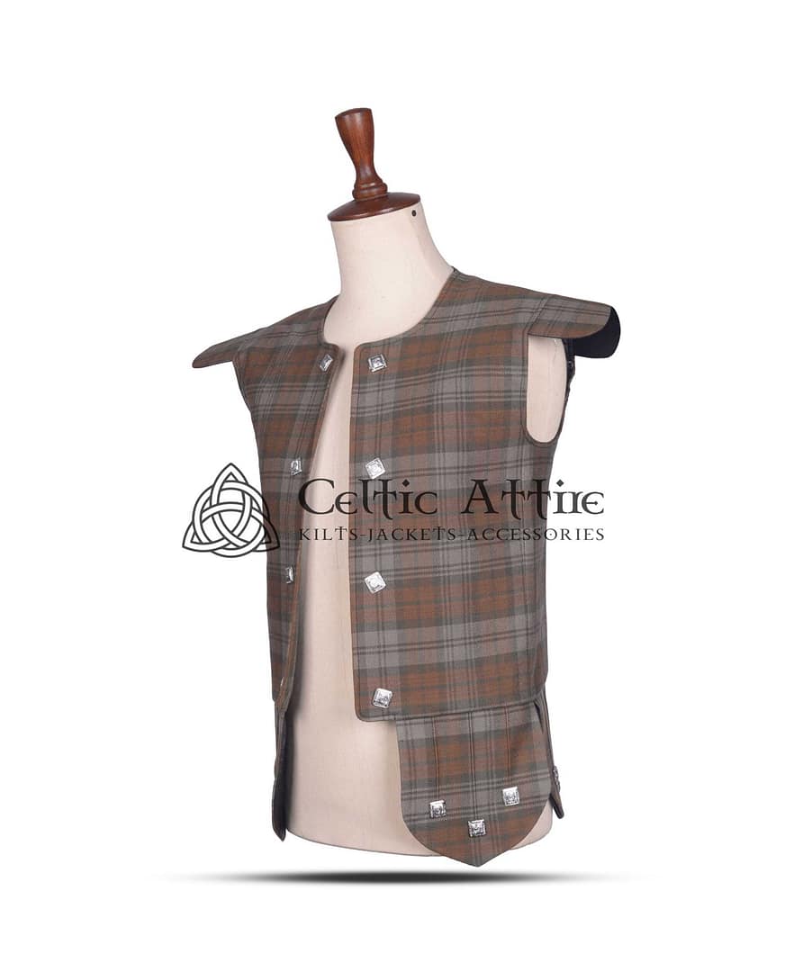 The Black Weathered Tartan Chieftain Vest offers versatility in styling. Pair it with a kilt for a complete traditional look or wear it with jeans for a more contemporary style. Its design easily transitions between formal and casual occasions, making it a must-have addition to your wardrobe.