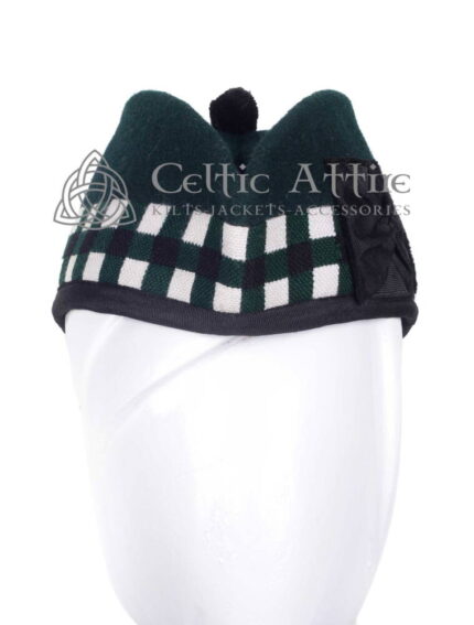 Black Wool Glengarry Diced Bonnet Scottish Military Hat
