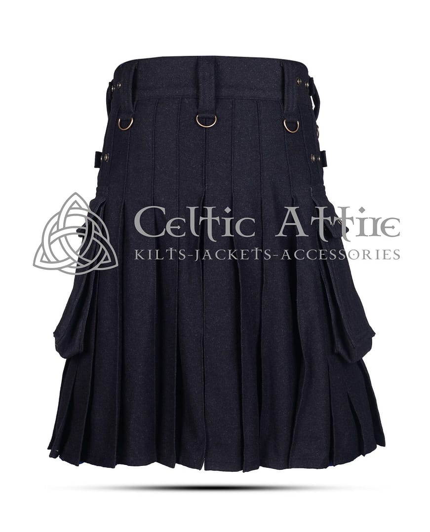 Whether you are attending a festival, going for a hike, or simply enjoying a day out, this kilt meets all your needs. Pair it with a simple shirt or a casual jacket for a complete look. The versatility of the Black Wool Utility Kilt makes it a staple in any wardrobe.