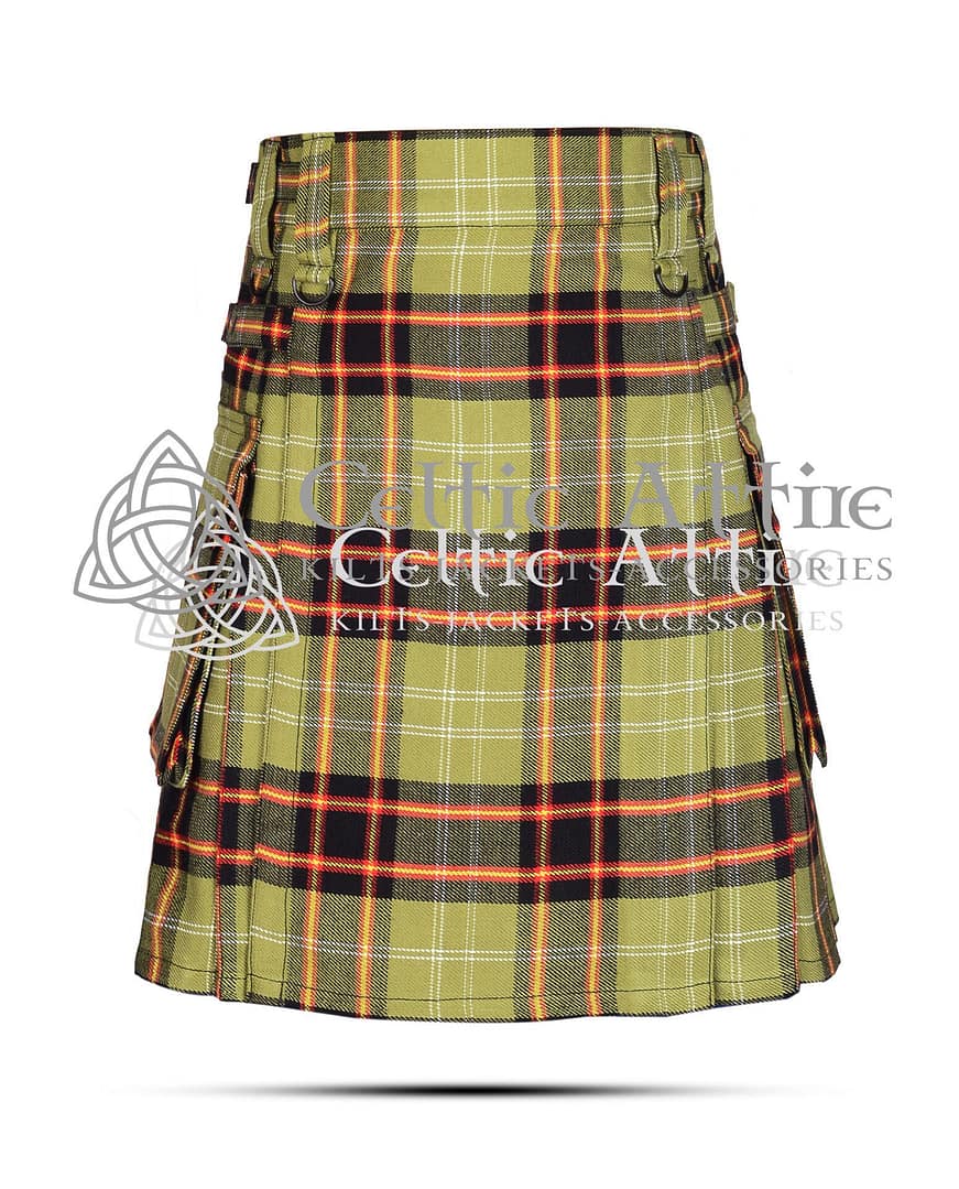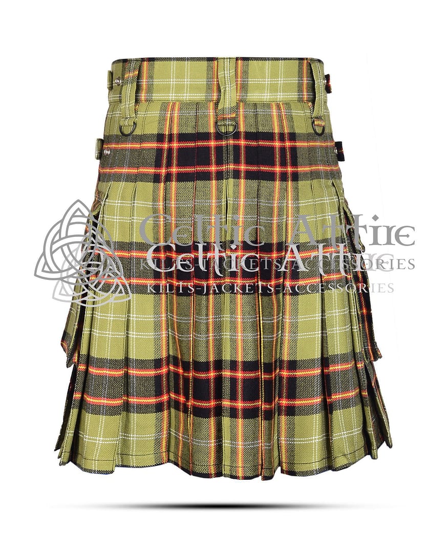 The kilt includes spacious utility pockets, providing ample storage for personal items. This practical feature enhances its functionality, making it ideal for everyday wear or special occasions. The adjustable straps ensure a perfect fit, allowing for easy customization based on your waist size.