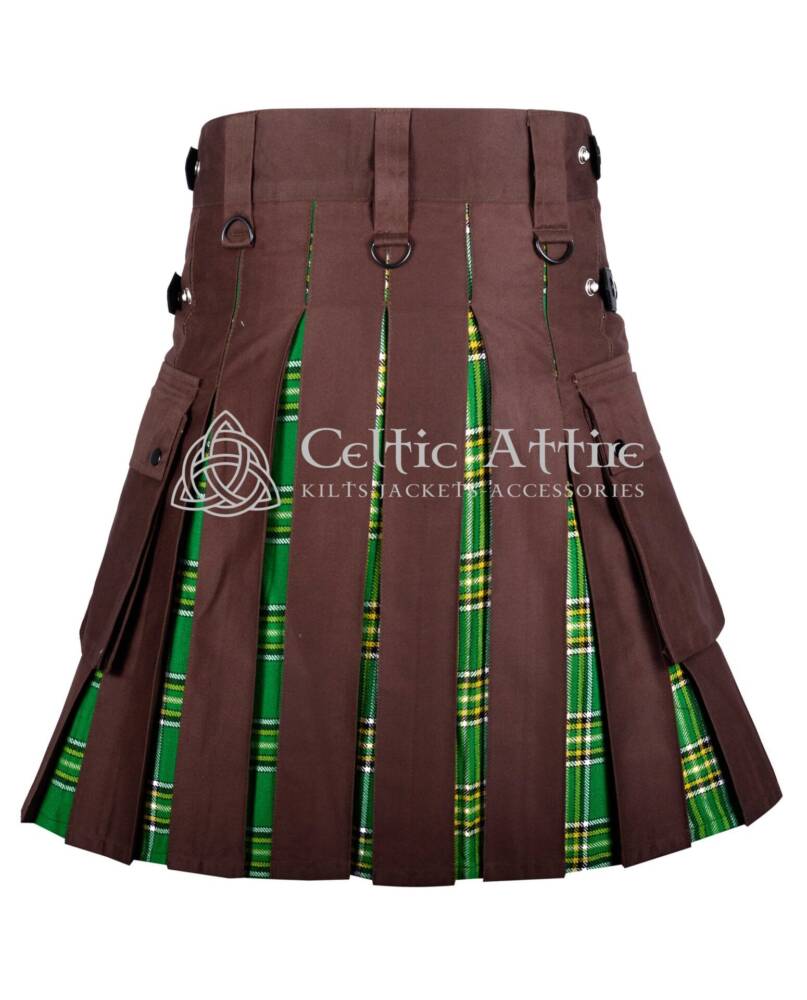 Brown Cotton Irish Tartan Hybrid Utility Kilt
