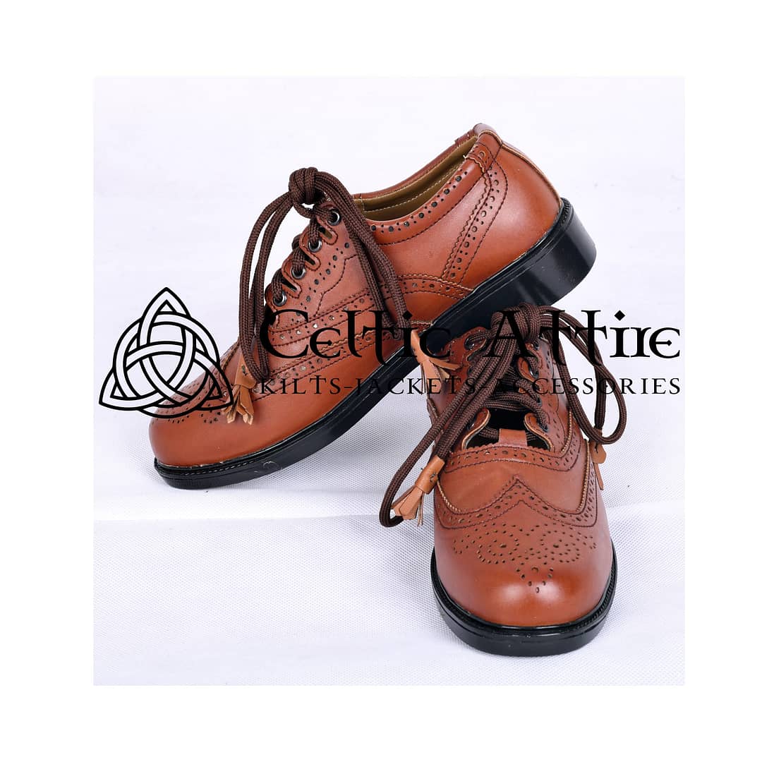 The warm brown hue adds versatility, pairing effortlessly with both formal and casual Highland attire. Whether you’re celebrating a special occasion or embracing your Scottish roots, these brogues are the perfect footwear to complete your look. Available in a range of sizes, Brown Leather Ghillie Brogues cater to all foot types, ensuring a comfortable and precise fit. Combining traditional design with modern durability, they are a must-have addition to any wardrobe. Perfect for gifting or personal use, these brogues are a symbol of Scottish pride and timeless style.