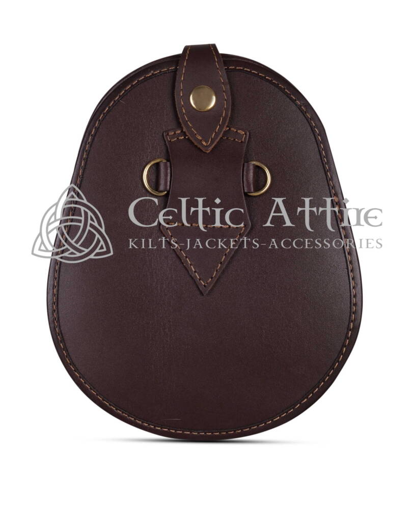 This listing is for the Premium Handmade Scottish Brown Leather Hunting Sporran equipped with a unique Gold Snaps Pattern on the Front. This sporran can be made with various combinations of leather and fur. Premium in quality and feel, this sporran is yet a budget range sporran. It comes with a chain strap and a solid sporran belt.