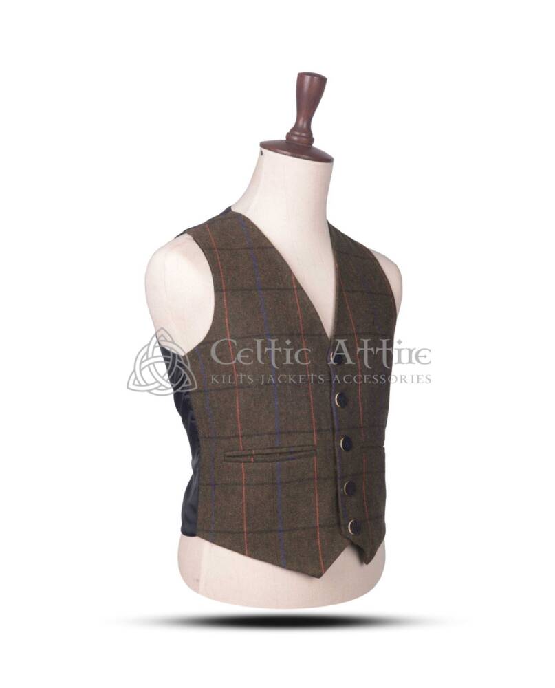 Invest in this wardrobe staple today, and embrace a look that combines classic charm with contemporary appeal. The Brown Plaid Wool Argyll Waistcoat is a must-have for anyone seeking a sophisticated and versatile piece that never goes out of style.