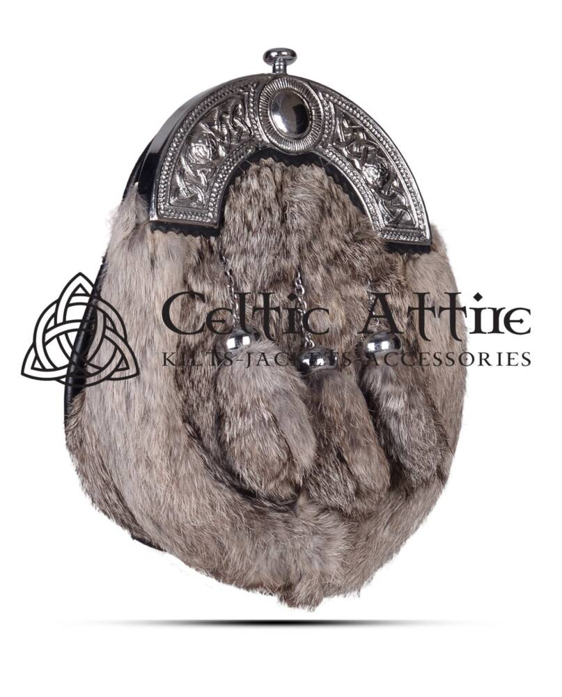 Brown Rabbit Fur Full Dress Sporran – Celtic Knots Cantle