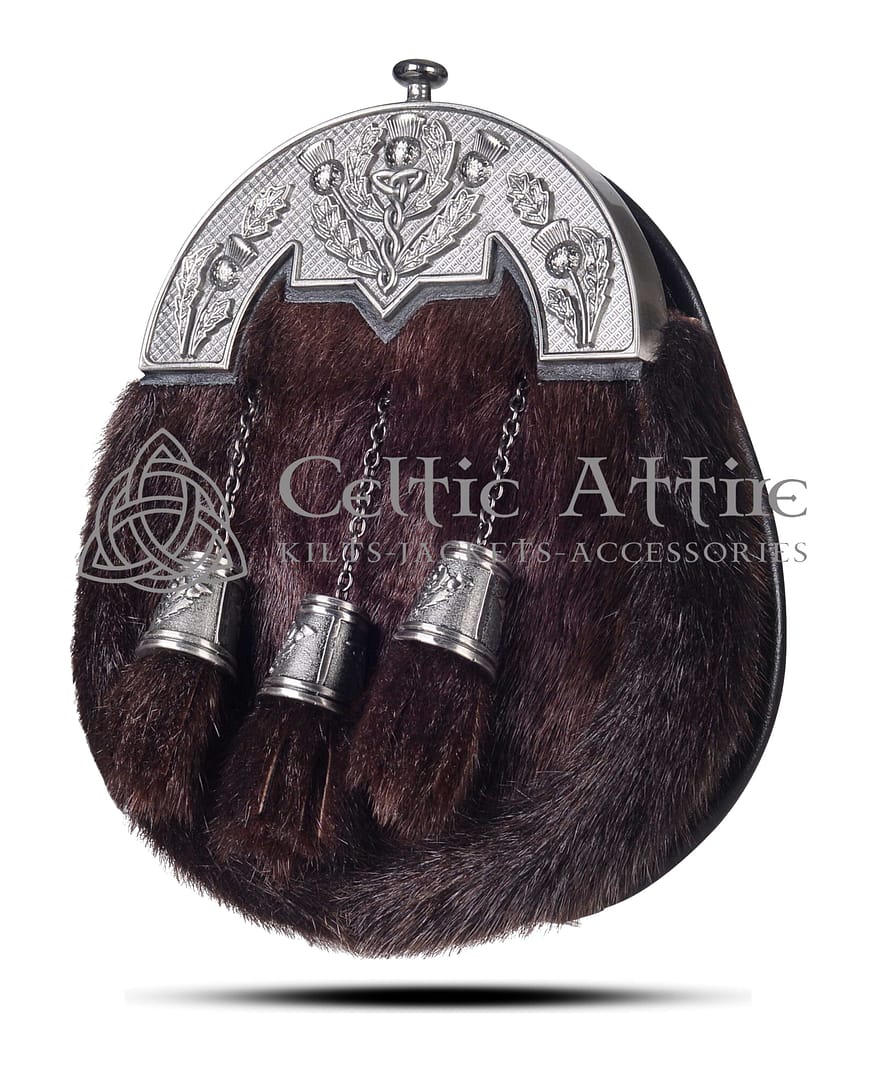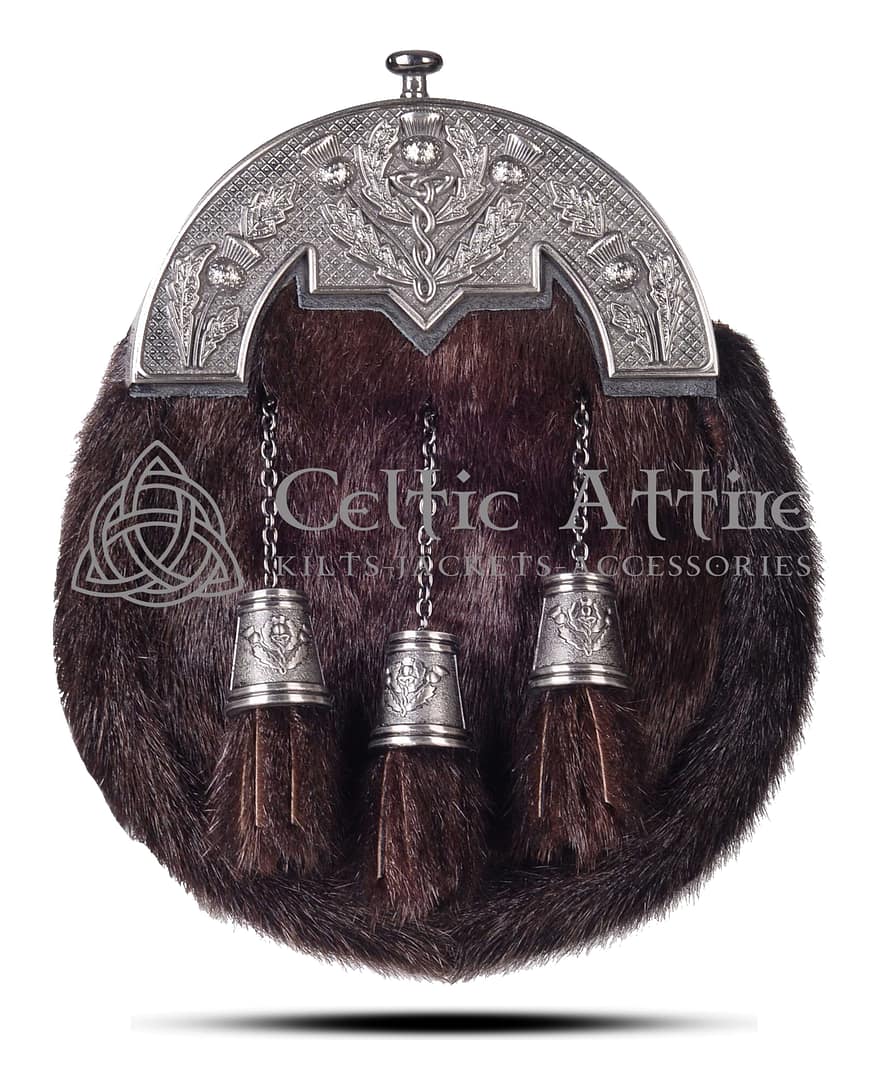 Brown Seal Fur Full Dress Sporran Nickle Brushed Thistle Cantle