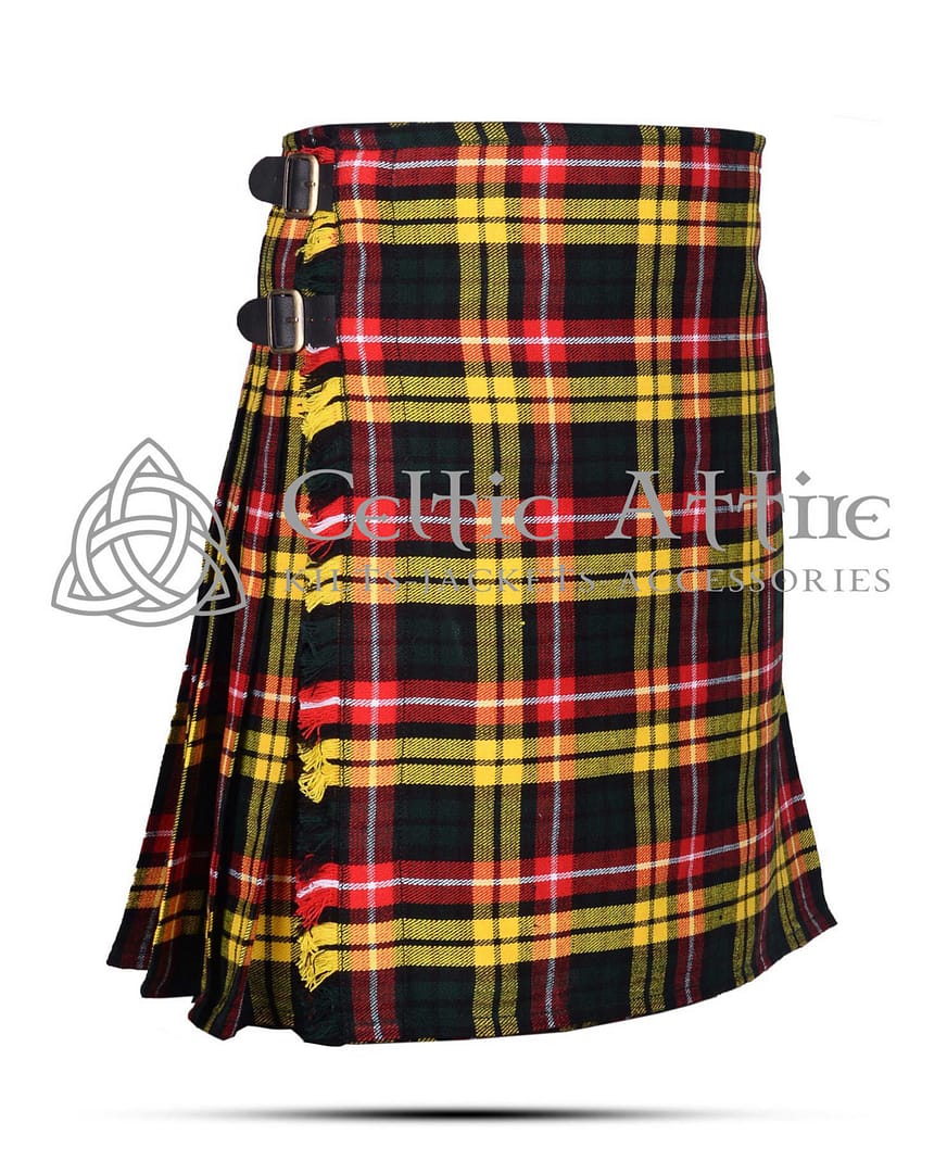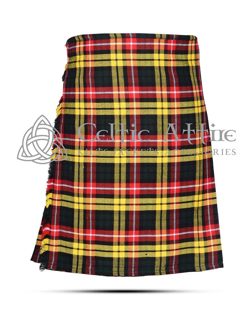 The Buchanan Tartan 8 Yard Kilt includes adjustable leather straps and rust-free buckles, ensuring a secure and customizable fit. You can easily adjust the waist to your preference, providing comfort throughout the day. The kilt is also fully lined to prevent chafing, making it ideal for all-day wear.