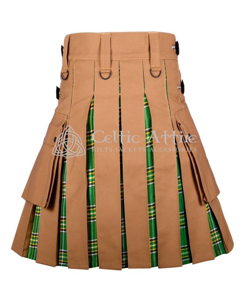 Overall, the Camel Cotton Irish Hybrid Utility Kilt combines fashion, comfort, and practicality. With its eye-catching color and functional features, it’s an excellent choice for anyone looking to honor their heritage while enjoying modern fashion. Whether you’re celebrating a special occasion or simply enjoying a day out, this kilt is sure to leave a lasting impression.
