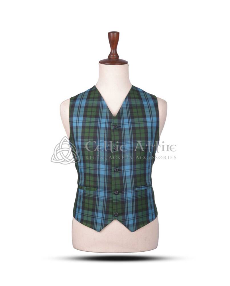 Embrace classic Scottish heritage with the Campbell Ancient Tartan Argyll Waistcoat. This stylish and sophisticated waistcoat features the timeless Campbell Ancient Tartan pattern, known for its rich green, blue, and black hues. Whether you’re attending a formal event, a wedding, or looking to add some tradition to your everyday wardrobe, this waistcoat offers the perfect balance of elegance and versatility.