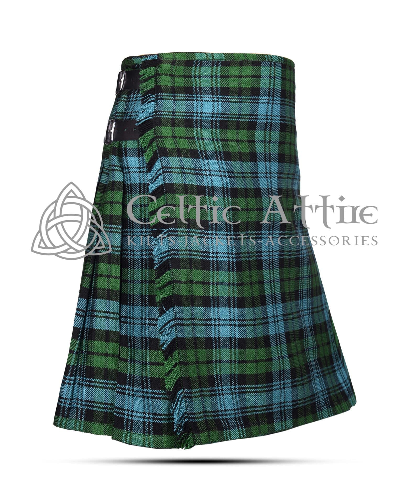 The Campbell Ancient Tartan Kilt is a stunning tribute to Scottish heritage and craftsmanship. Made from high-quality wool, this kilt features a distinctive ancient tartan pattern that showcases the rich history of the Campbell clan. The vibrant colors of blue, green, and white create a striking visual that is both traditional and elegant.