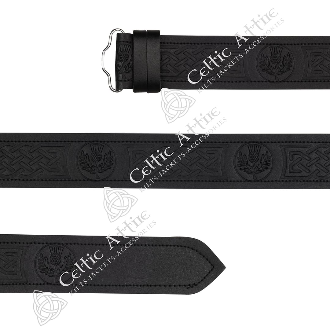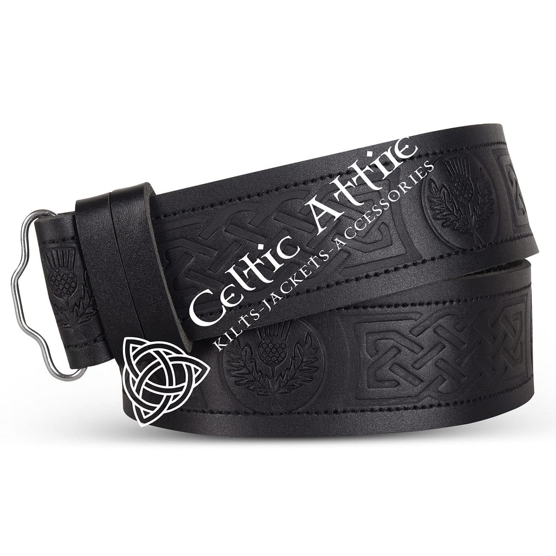 Celtic Knots and Circle Embossed Black Leather Kilt Belt