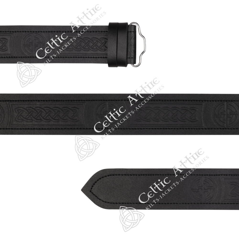 Celtic Knots and Circle Embossed Black Leather Kilt Belt