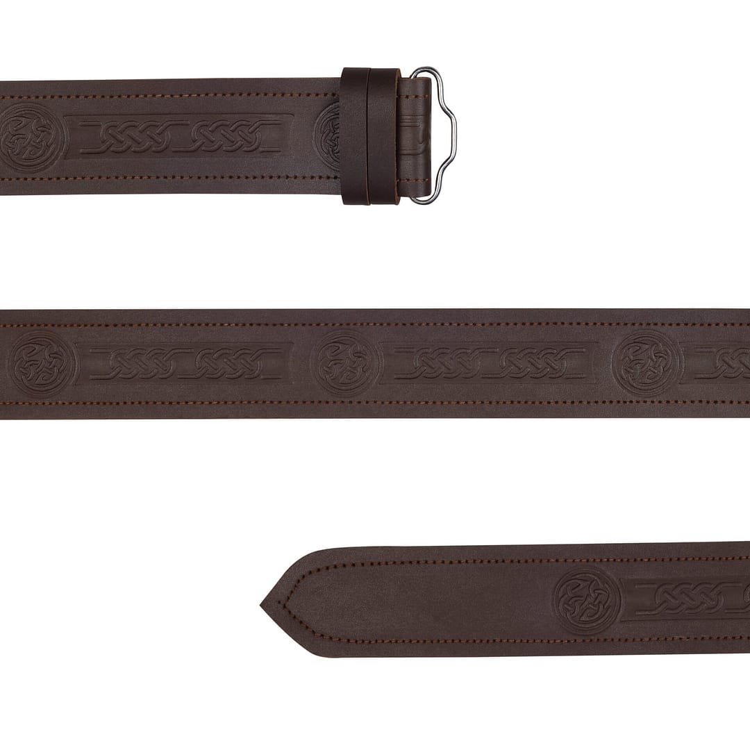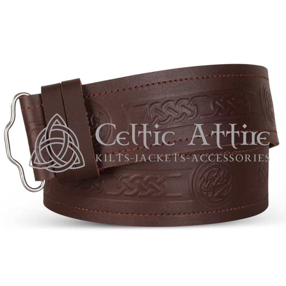 Celtic Knots and Circle Embossed Brown Leather Kilt Belt