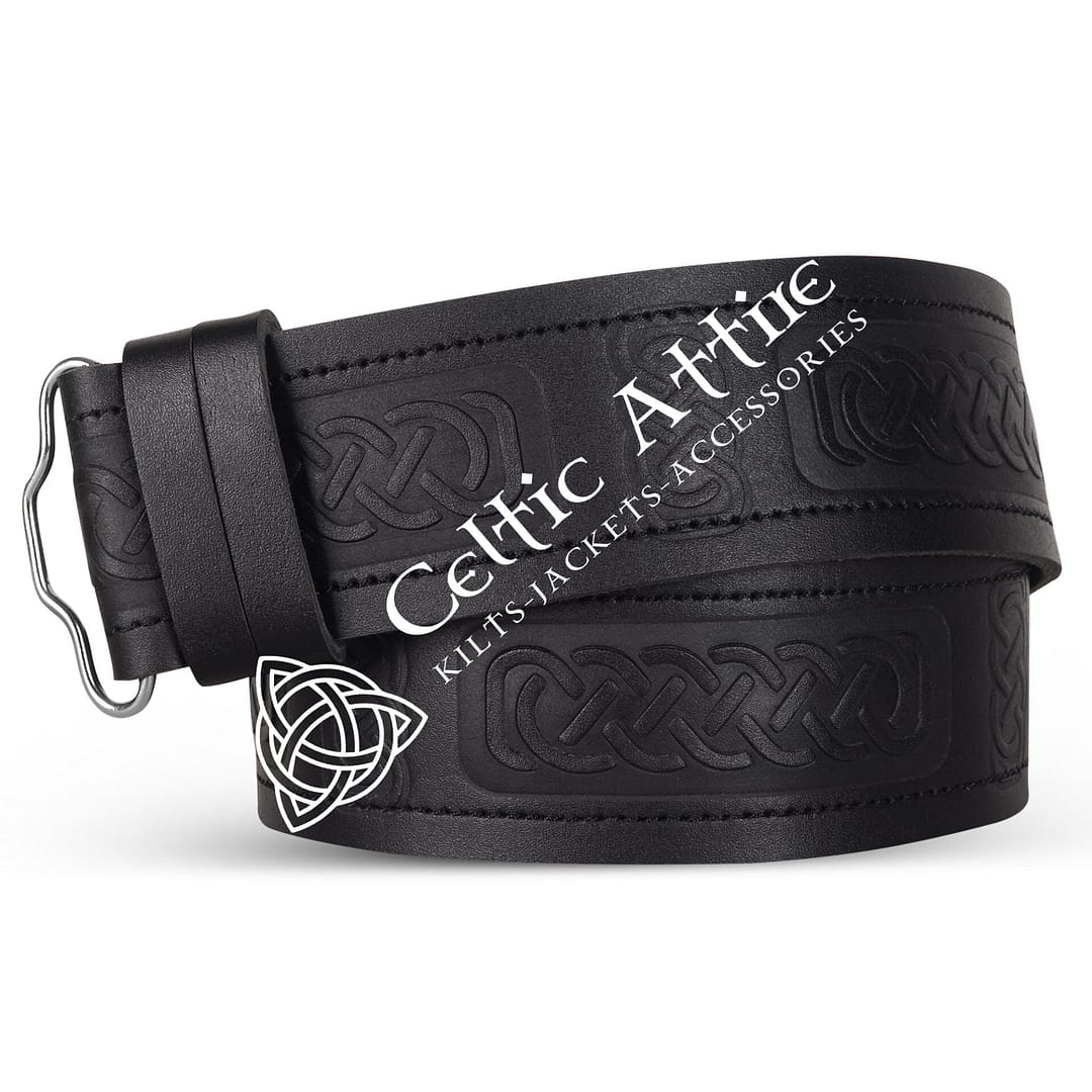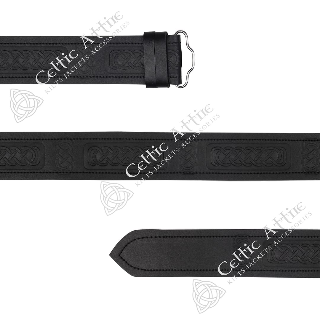 Celtic Knots Vertical Embossed Black Leather Kilt Belt
