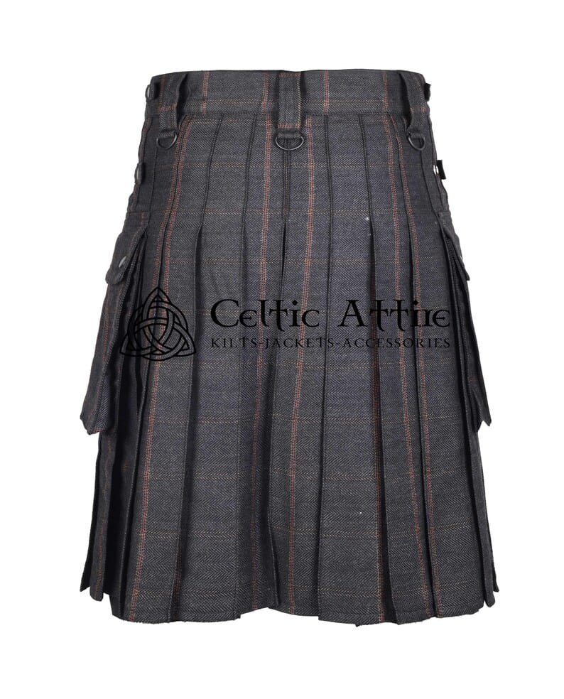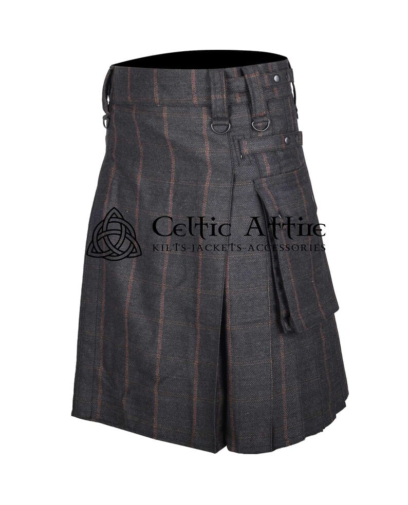 Charcoal Plaid Grey Tweed Wool Scottish Utility Kilt