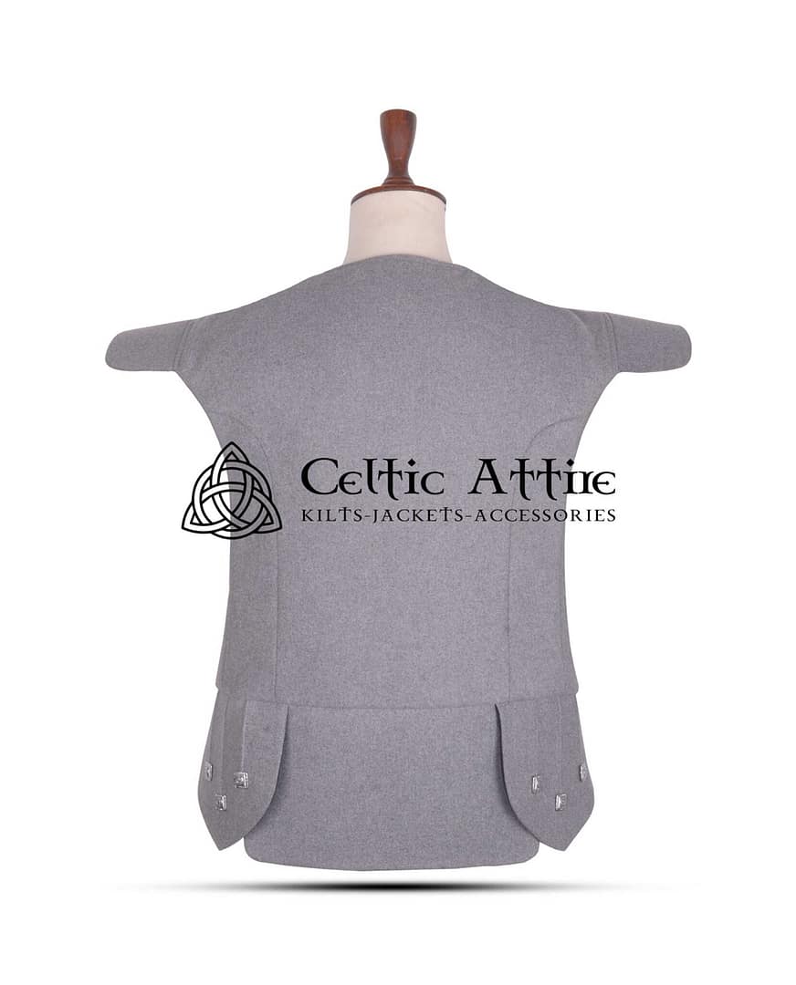 The Chieftain Waistcoat in Grey Wool can be worn over a shirt for a polished appearance or layered under a jacket for added warmth. Its five-button design allows for easy adjustment and a customizable fit. This versatility makes it suitable for weddings, business meetings, or casual outings.