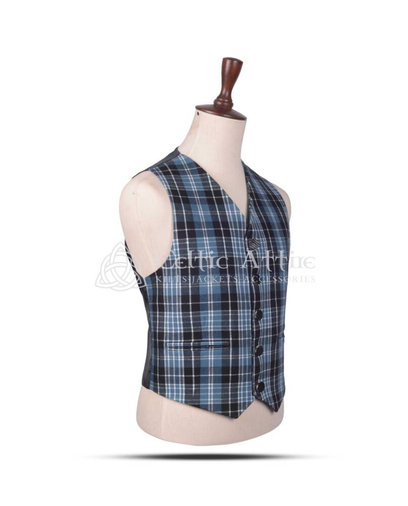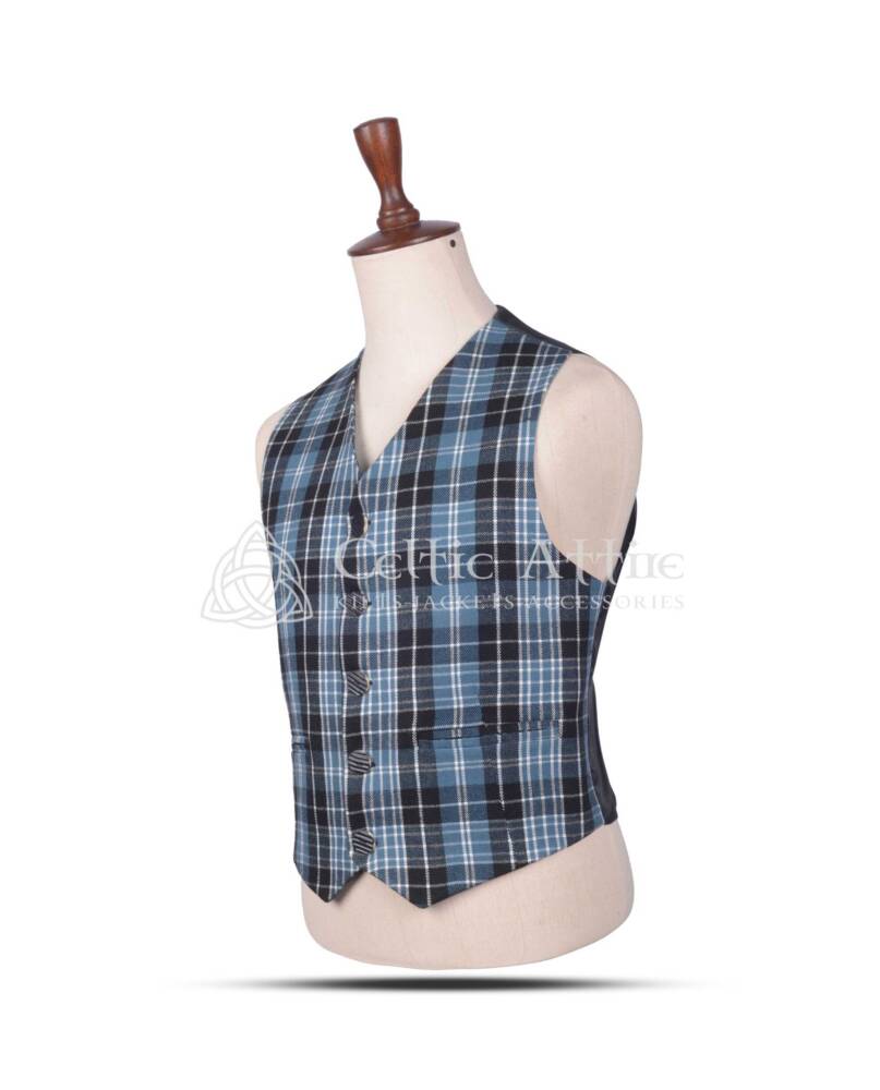 Crafted from a high-quality wool blend, this waistcoat ensures both comfort and durability, making it ideal for all-day wear. The tailored fit accentuates your figure while allowing freedom of movement, making it suitable for both standing and dancing at formal occasions. The classic five-button front provides a structured, polished look that complements the Clergy Ancient Tartan beautifully. Whether worn with a matching kilt, tartan trews, or formal trousers, this waistcoat brings a touch of elegance and style to any outfit.