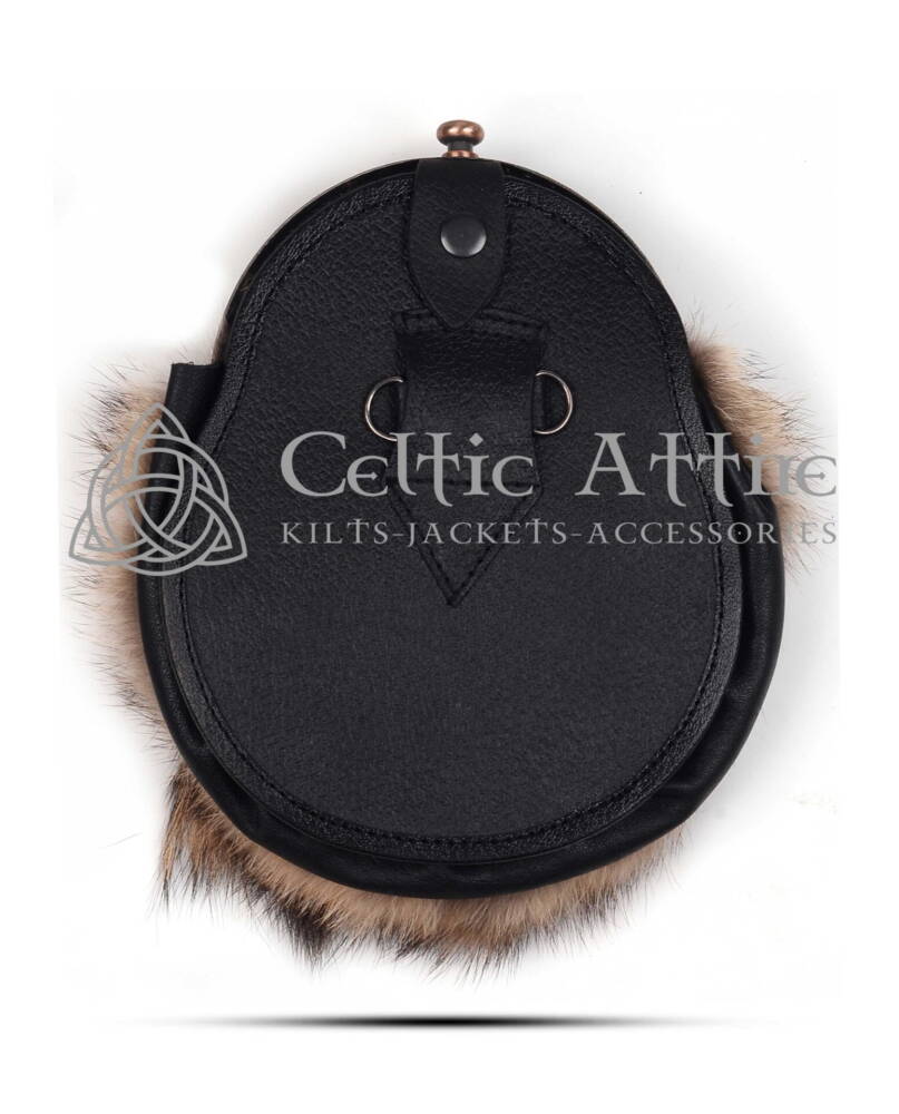 The interior is lined with soft suede and includes pockets for cards and coins, providing practicality without sacrificing elegance. The durable leather back enhances its longevity, making it a reliable choice for various events. The Thistle Cantle Sporran is perfect for weddings, Highland games, and other ceremonial gatherings. Its classic design pairs beautifully with any kilt or formal wear, adding personality and flair to your ensemble. The three elegant tassels hanging from the front add a touch of sophistication, enhancing the overall aesthetic of the sporran. Investing in the Coyote Fur Dress Cantle Sporran means embracing Scottish heritage while showcasing your unique style. This exquisite accessory is more than just a sporran; it’s a statement piece that reflects your appreciation for quality craftsmanship and tradition.