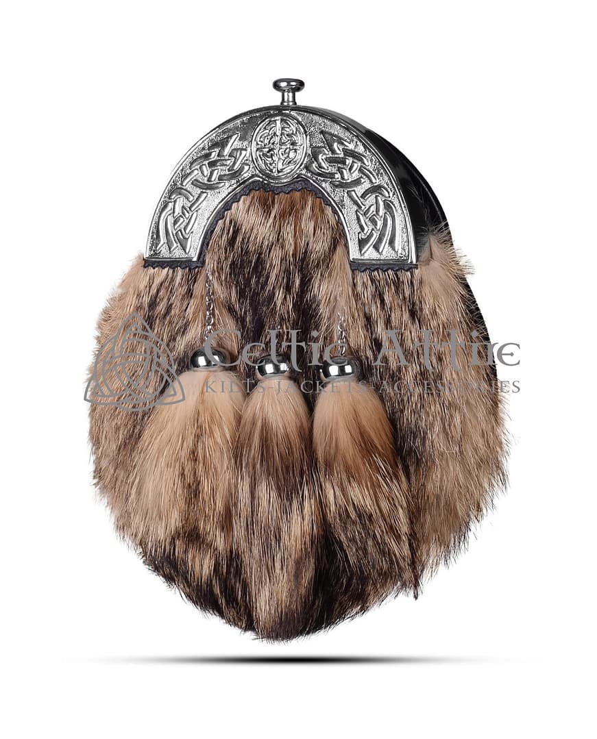 Coyote Fur Full Dress Sporran – Celtic Knot Cantle